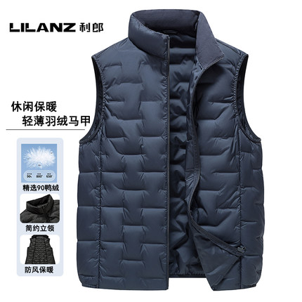 利郎冬季羽绒马甲男中年加厚白鸭绒内胆保暖V领背心爸爸装坎肩