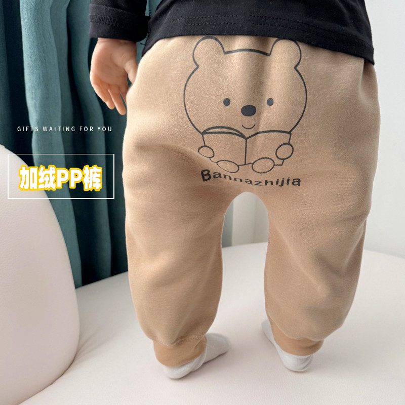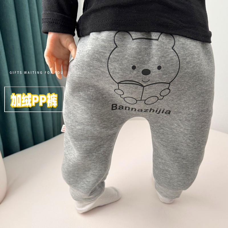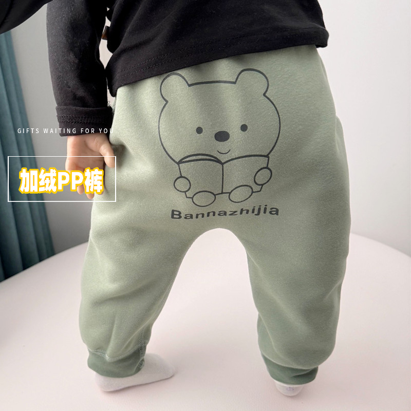 宝宝纯棉加绒大庇庇保暖长裤秋冬