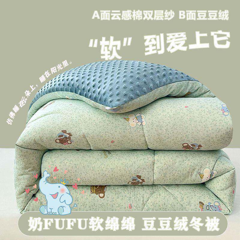 双层纱被子豆厂家直供绒秋冬大豆用棉被纤维豆春秋家单人宿舍加冬
