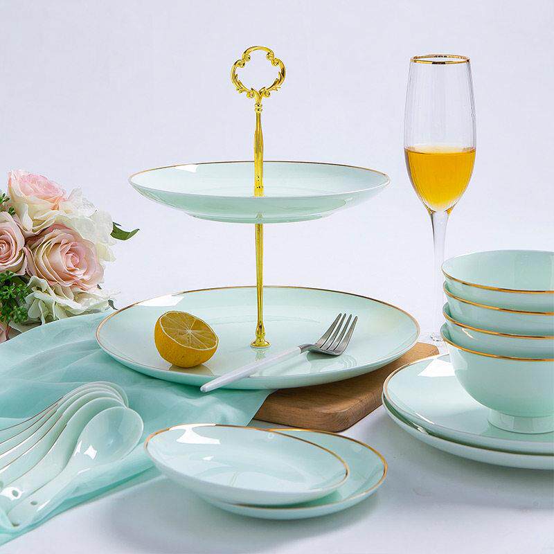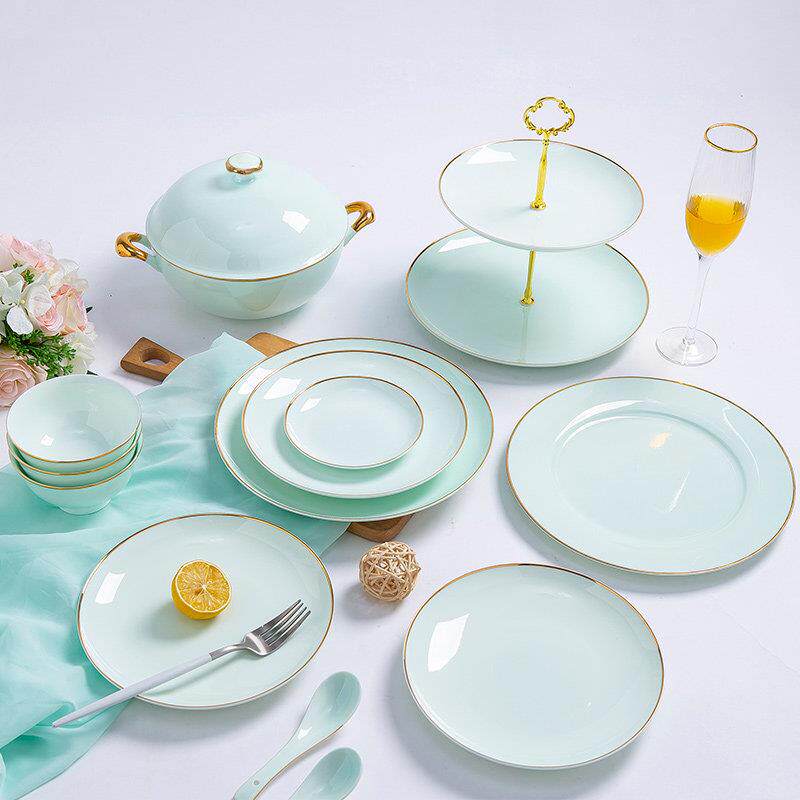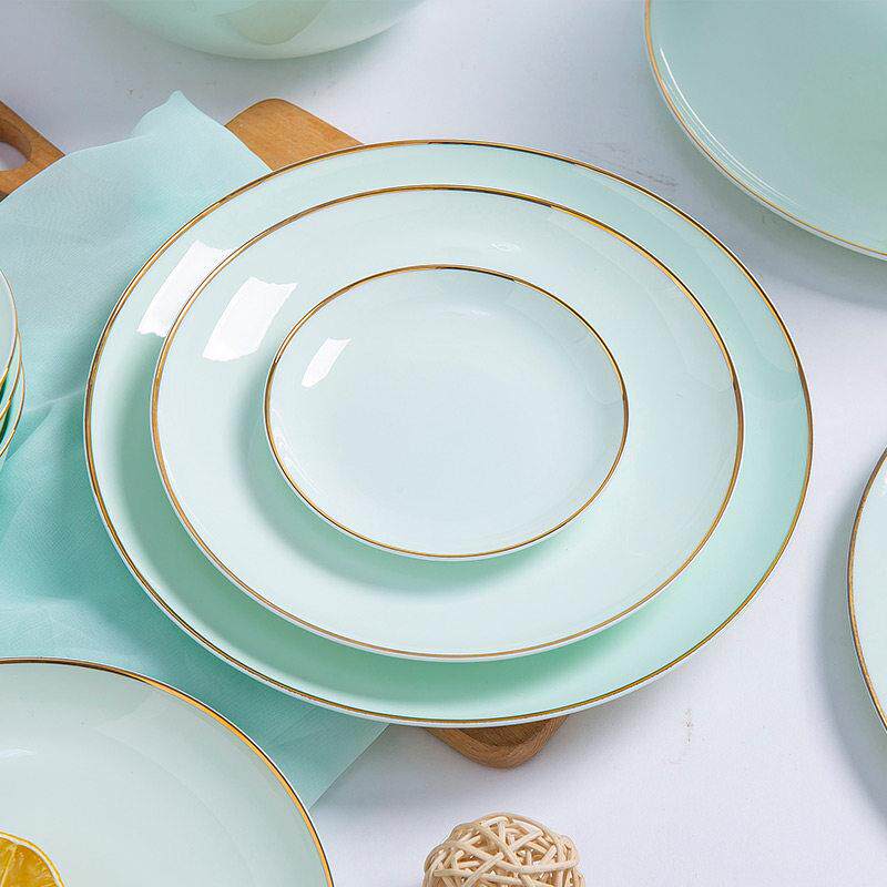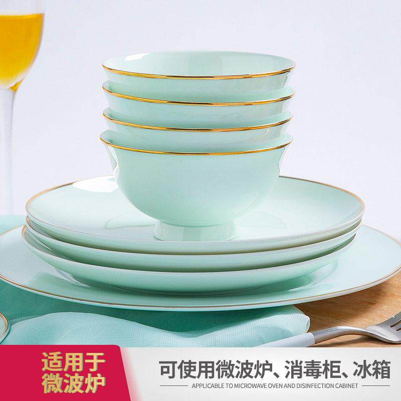 德镇陶瓷器吃饭套碗盘子家用欧式简约碗骨瓷组合金边餐具碗碟套装