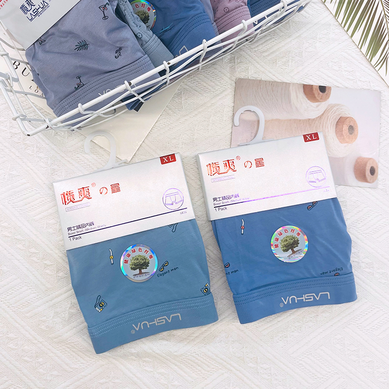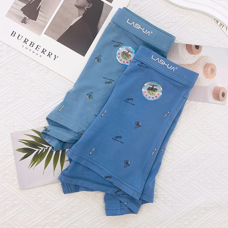 买6送1榄爽精品男士平角内裤 中腰莫代尔印花透气舒适男式四角裤