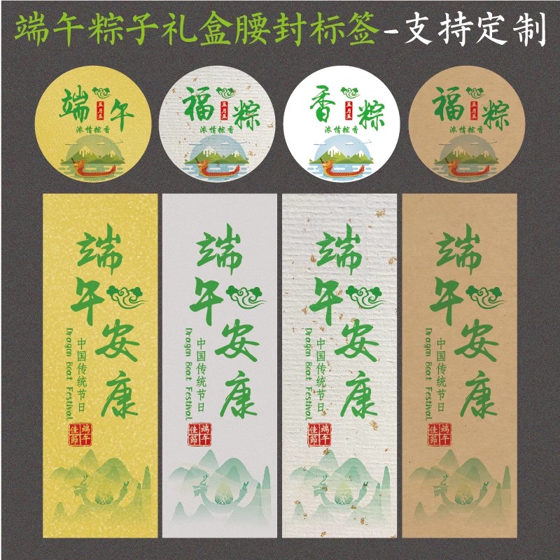 端午节粽子礼盒腰封不干胶标签贴纸端午安康粽子包装封口贴可通用