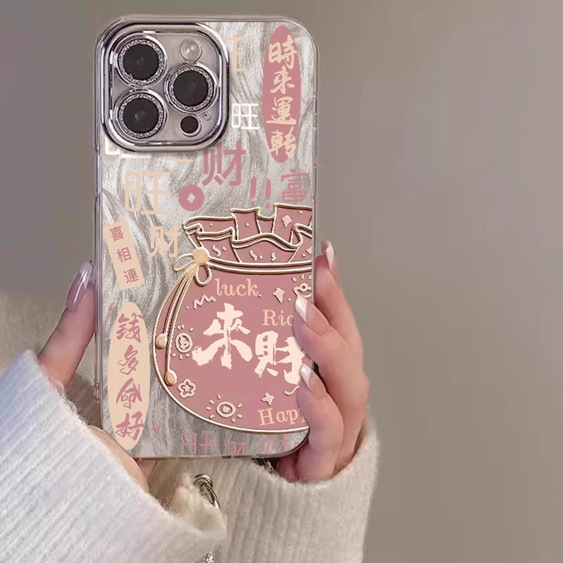 适用苹果系列发财钱袋手机壳