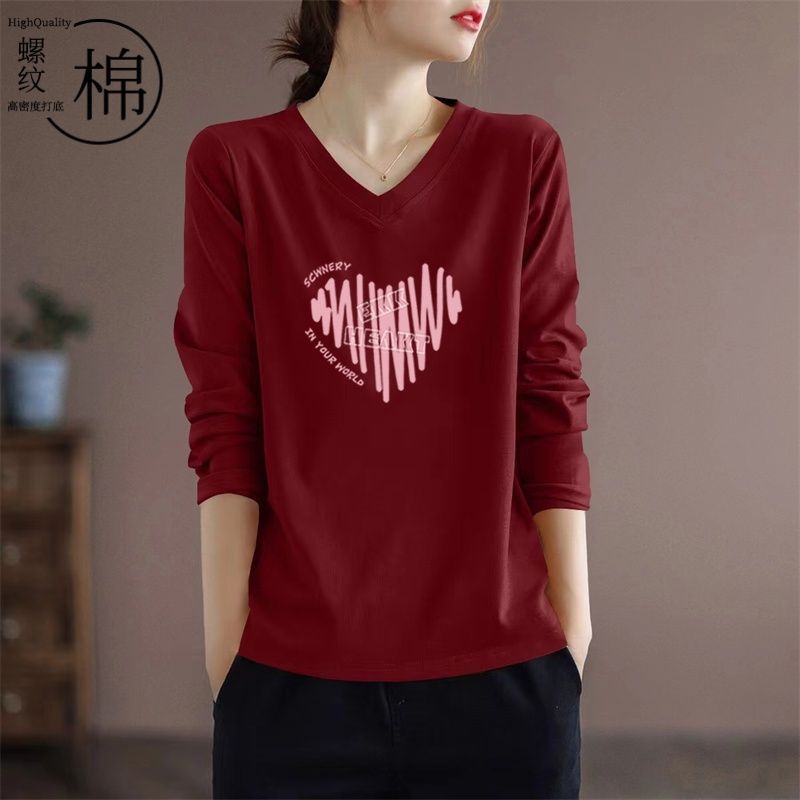 V领长袖T恤女早秋新款遮肚子宽松显瘦洋气时尚内搭打底衫chic上衣