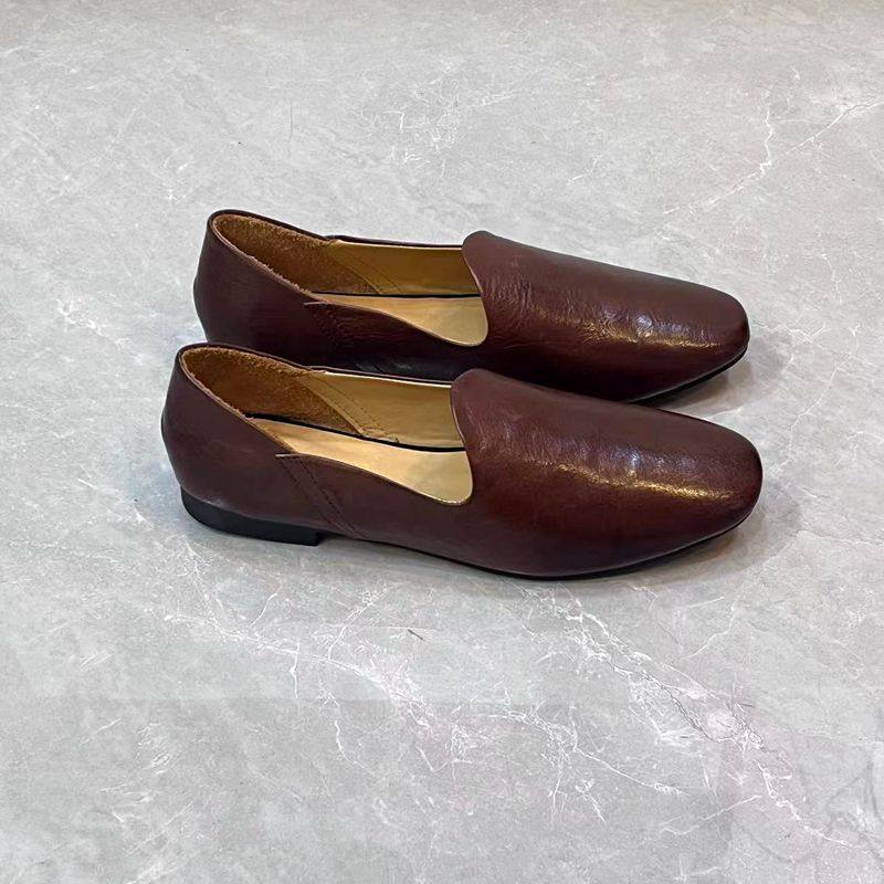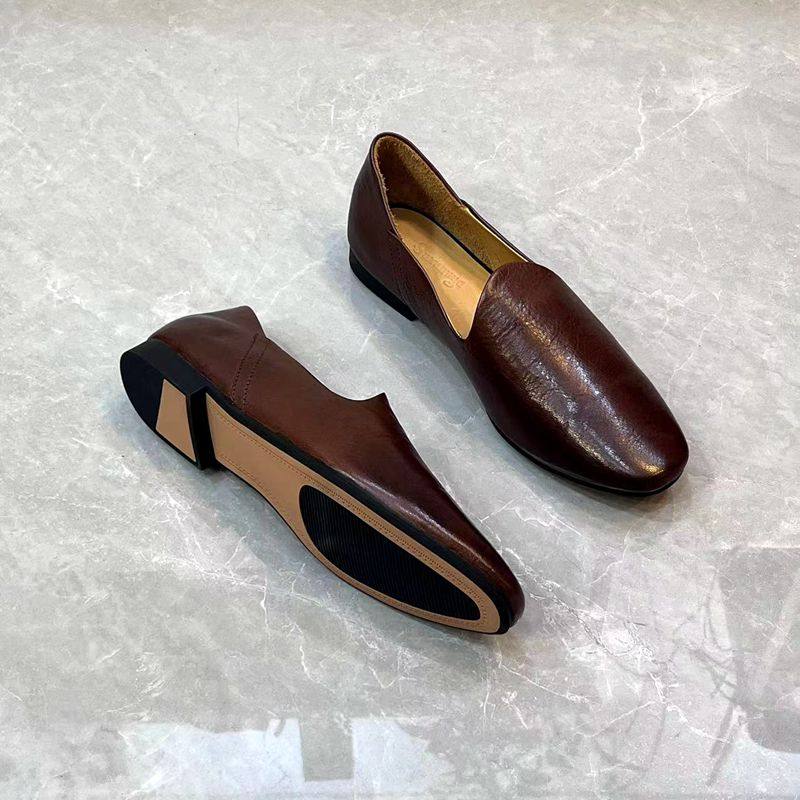 特惠~英伦风真皮圆头乐福鞋平底通勤百搭复古一脚蹬小皮鞋