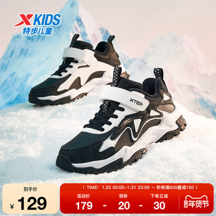 特步童鞋儿童棉鞋男童冬季新款中大童运动休闲魔术贴防滑耐磨加绒