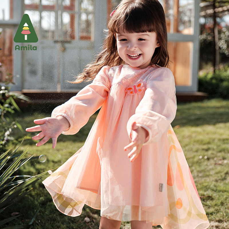 Amila童装女童宝宝夏季连衣裙出游表演蝴蝶仙女裙子2025春秋新款