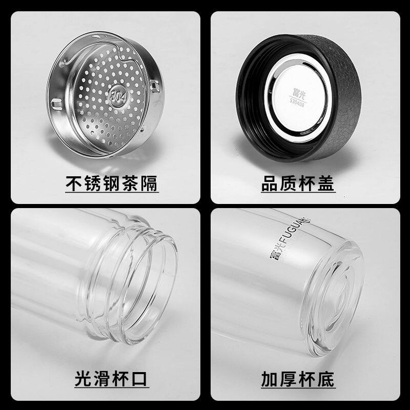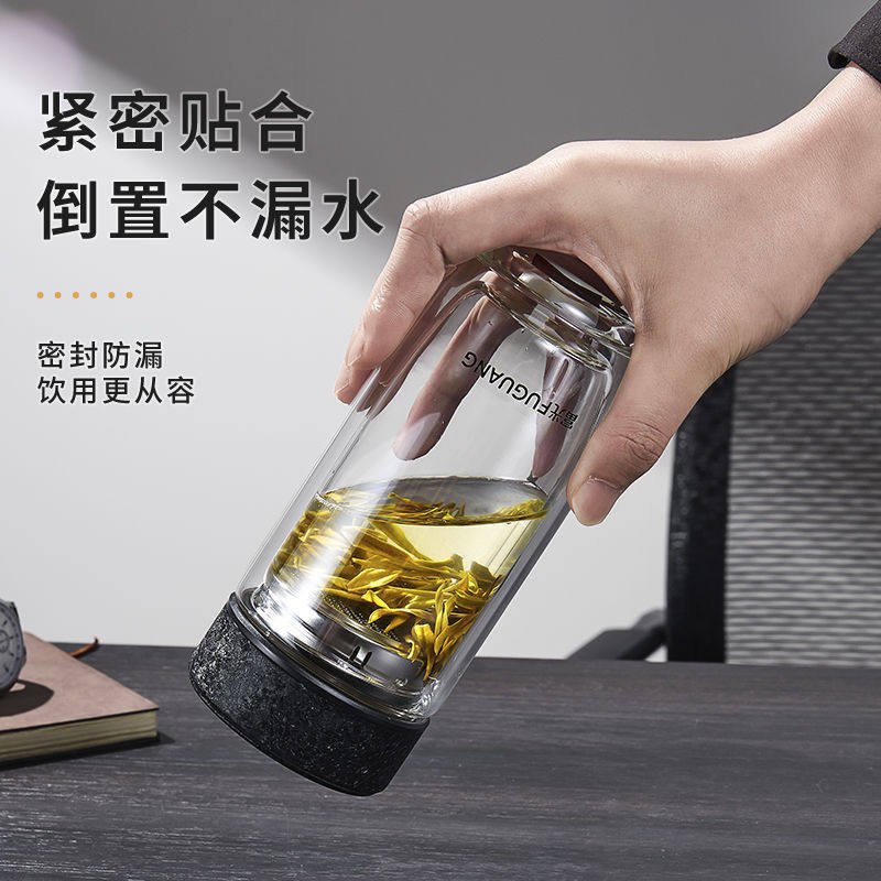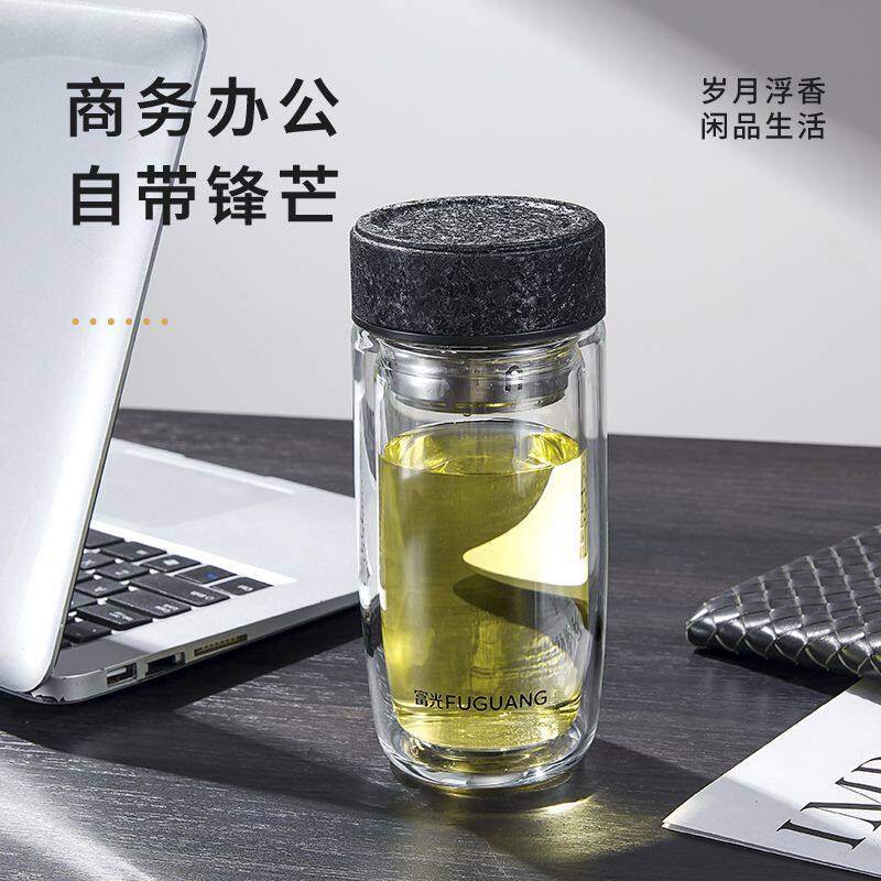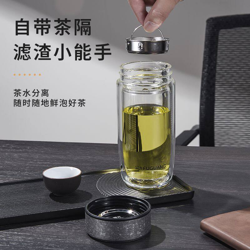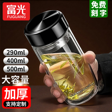 富光玻璃杯子双层便携男士商务个人专用泡茶杯加厚鹅蛋大容量水杯
