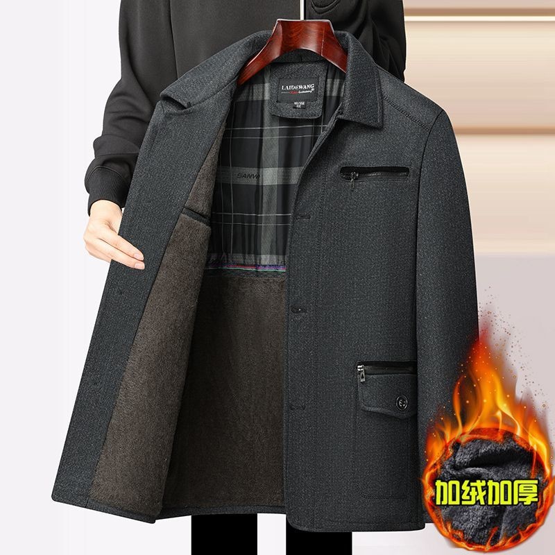 秋冬季中老年男装加绒外套爸爸翻领商务衣服中年男加厚夹克衫