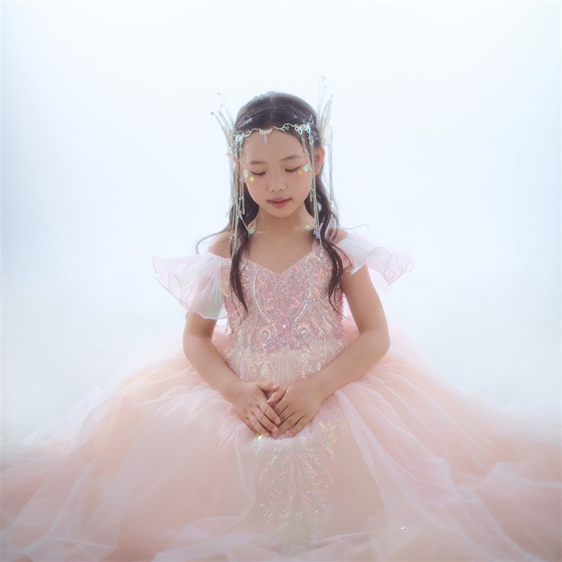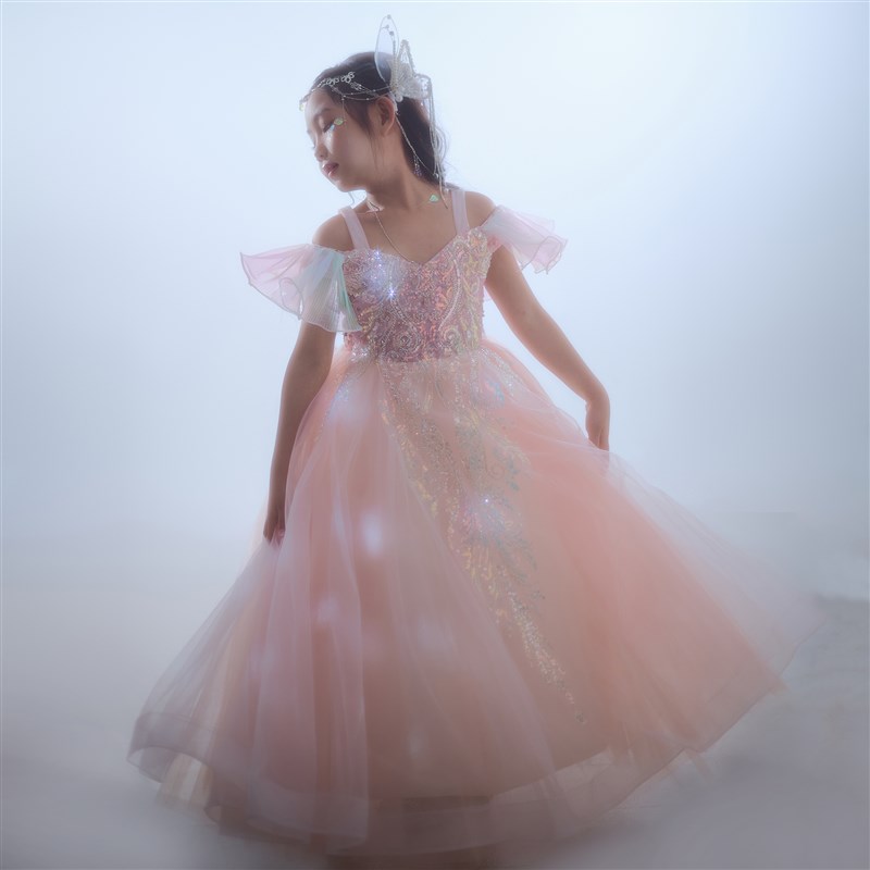 六一儿童礼服女童洋气粉色公主裙生日女孩花童主持钢琴模特演出服