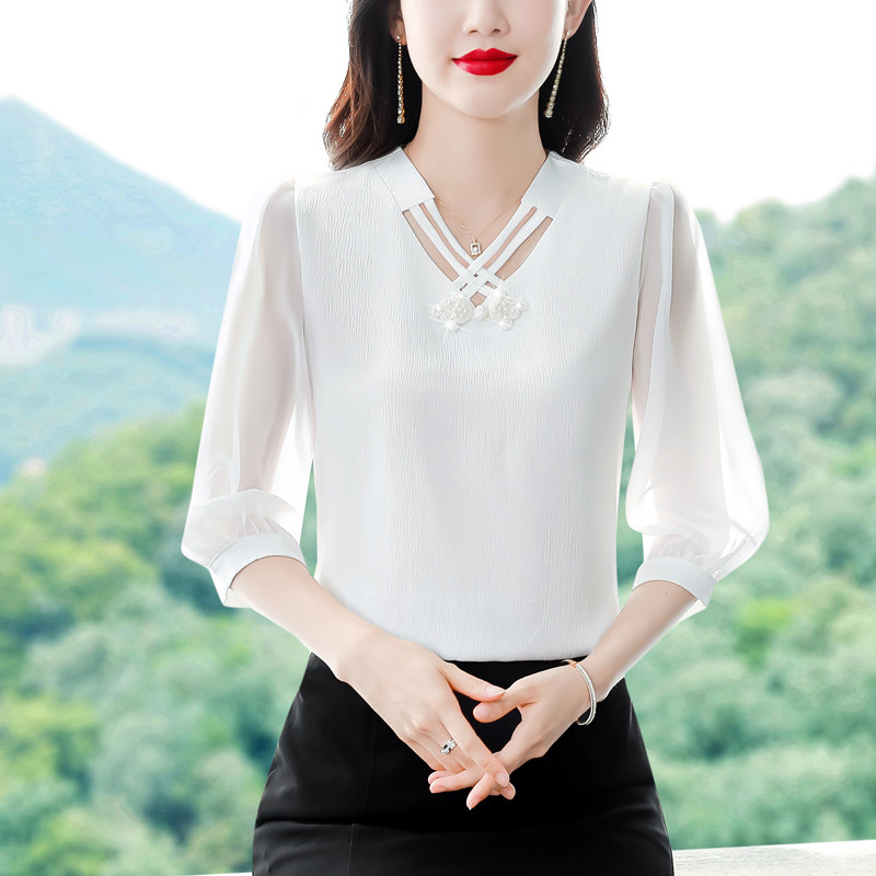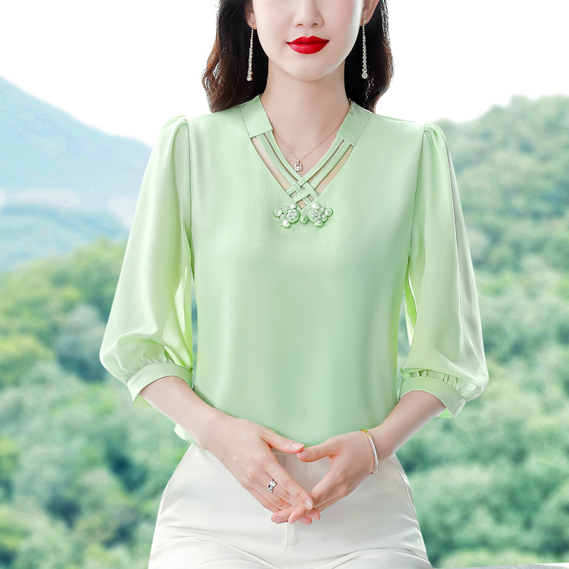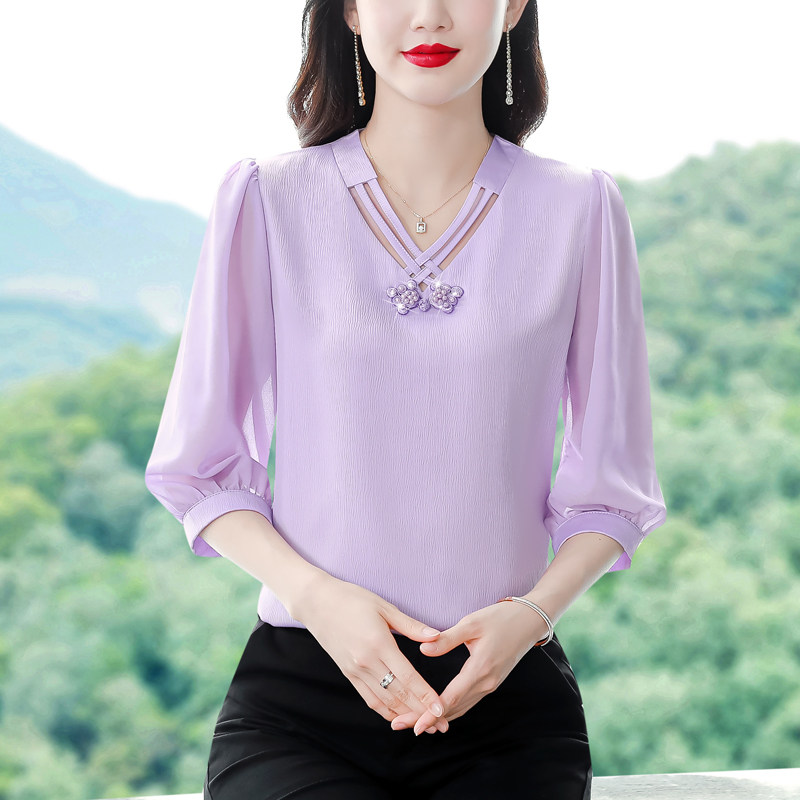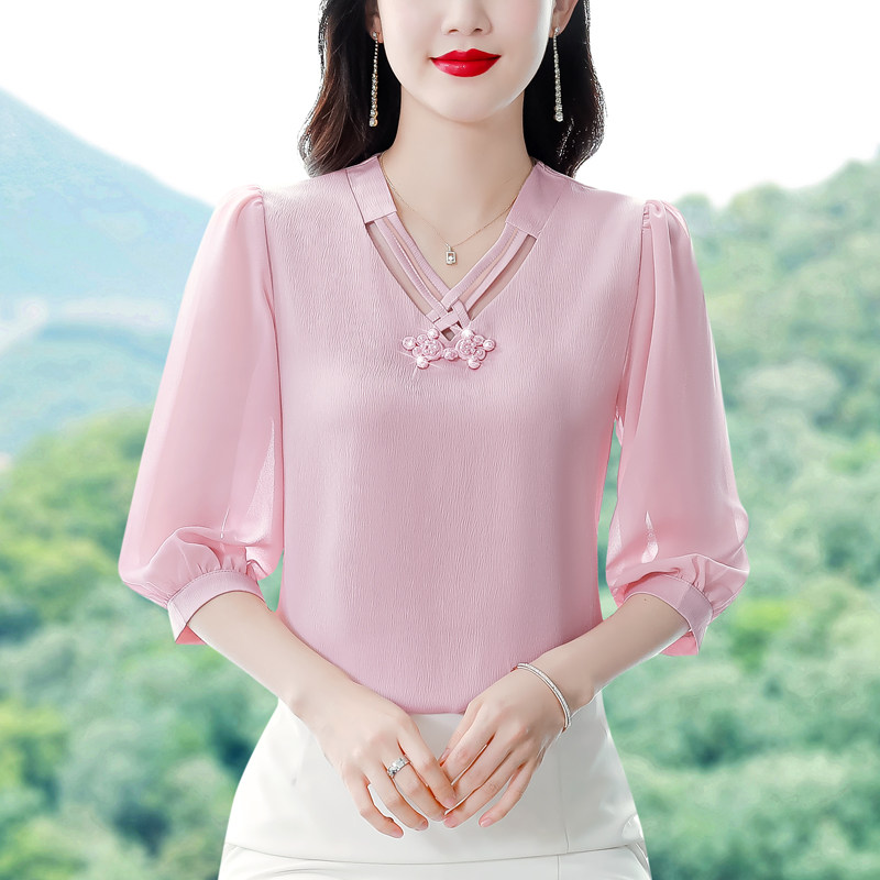 高档真丝衬衫女七分袖新款小衫洋气妈妈装短袖衬衣桑蚕丝夏装上衣