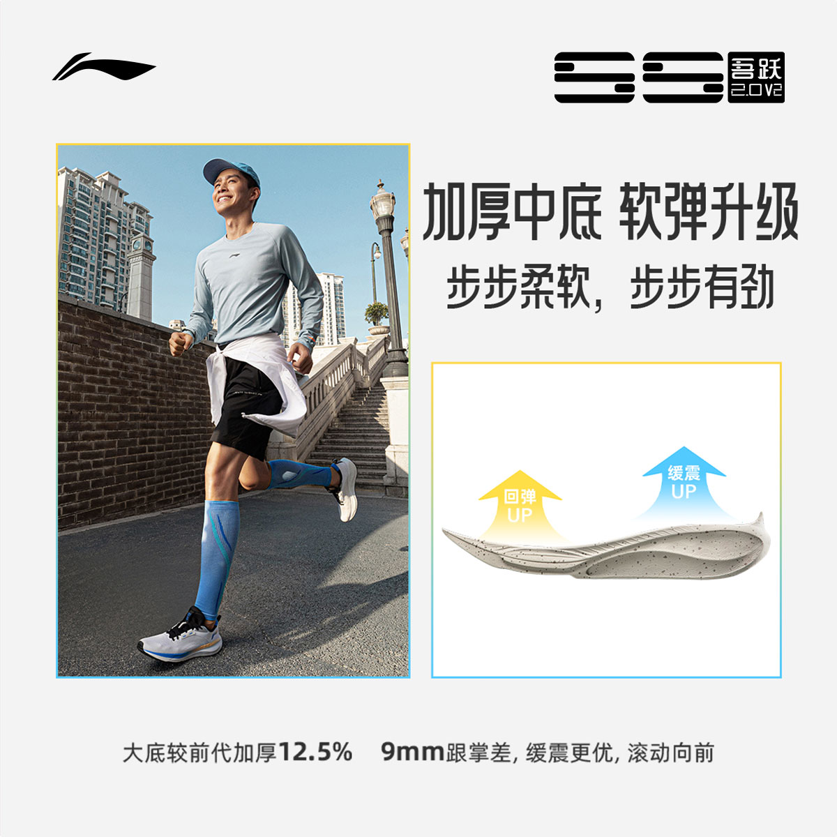 李宁吾跃2.0 V2| 跑步鞋男鞋厚底轻便网面透气中考体测运动鞋女鞋