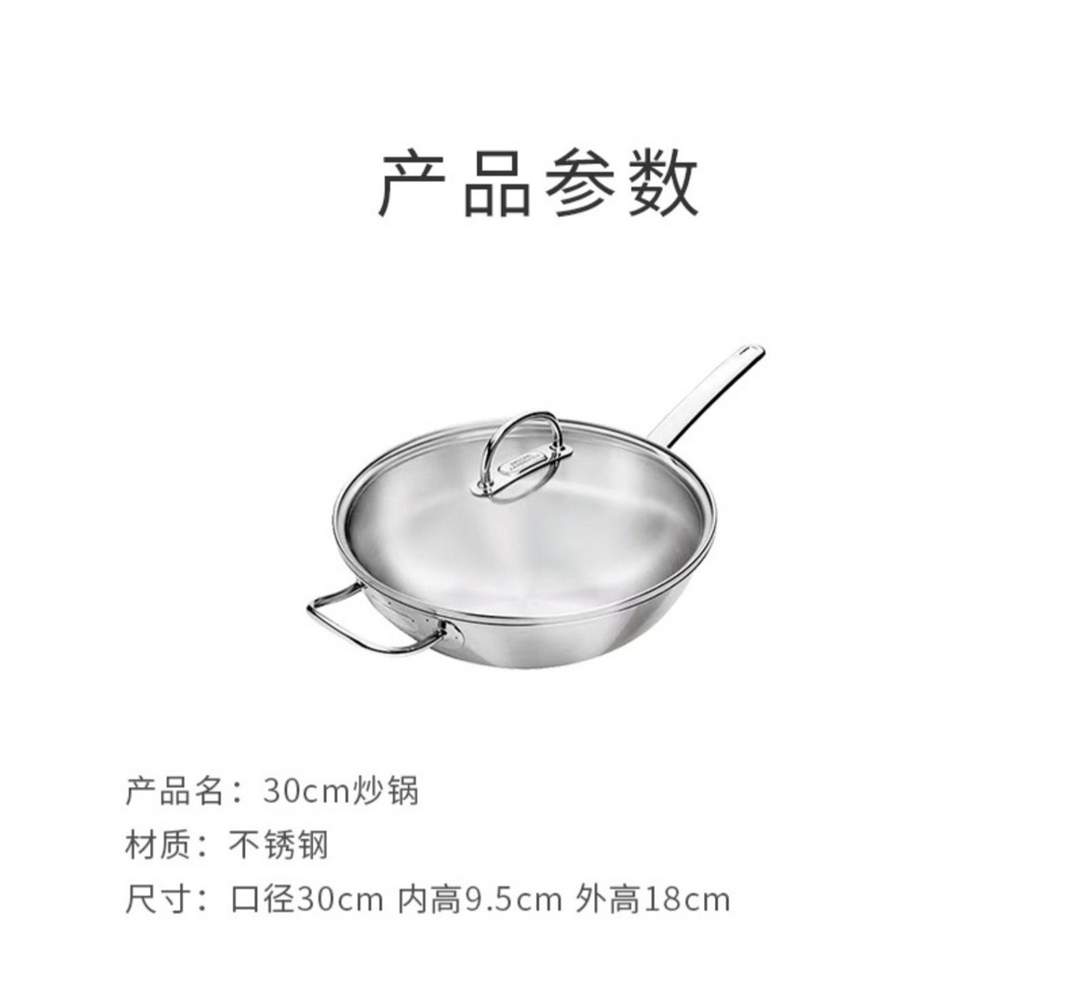 双立人Prime 30cm中式炒锅无涂层少油烟不锈钢锅电磁灶燃气通用