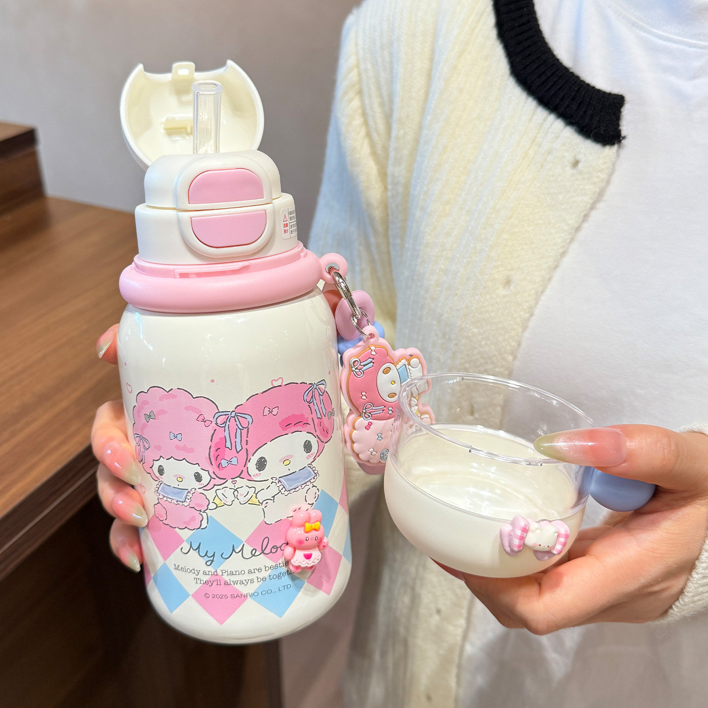 三丽鸥库洛米保温杯女生儿童学生上学有盖喝水壶高颜值吸管水杯子