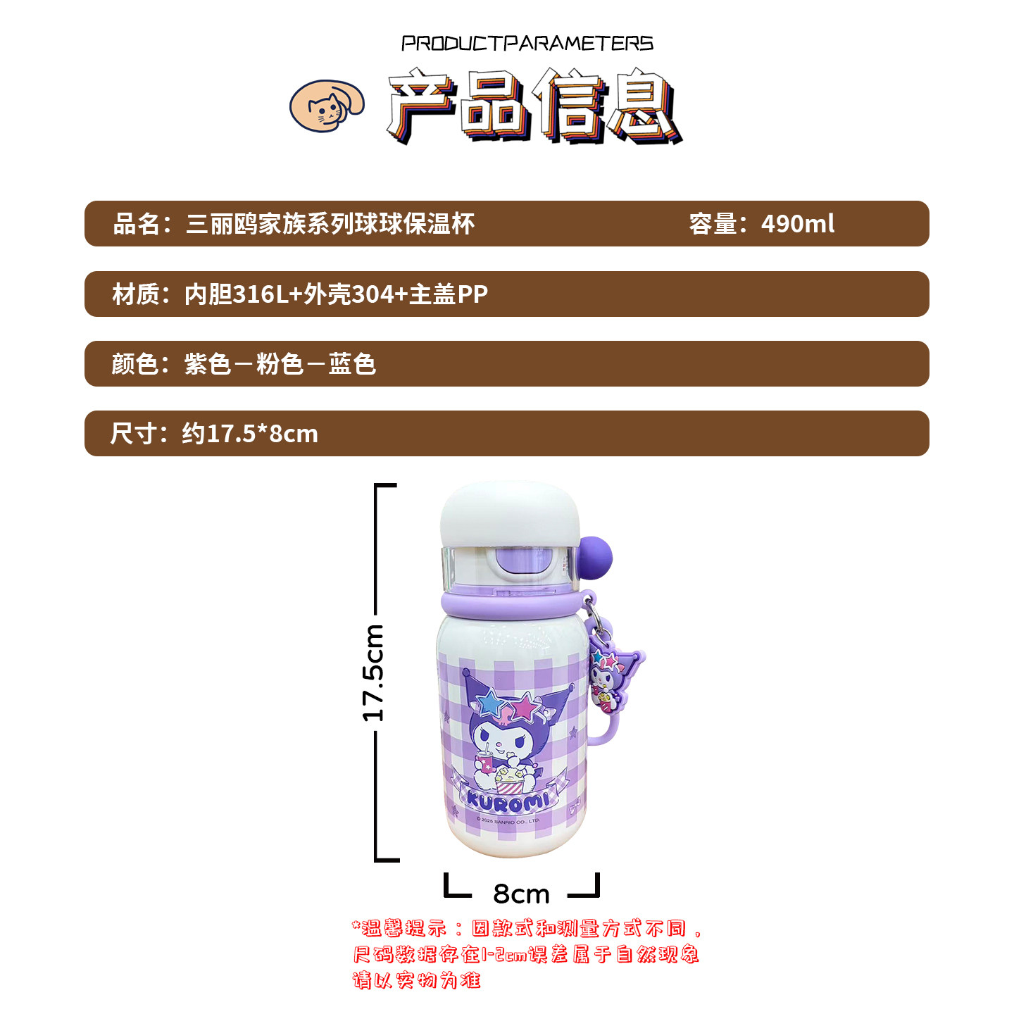 三丽鸥316L保温杯高颜值一杯三饮