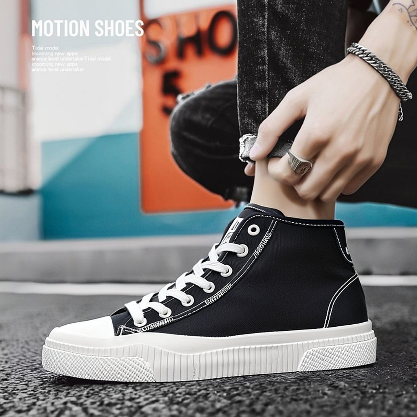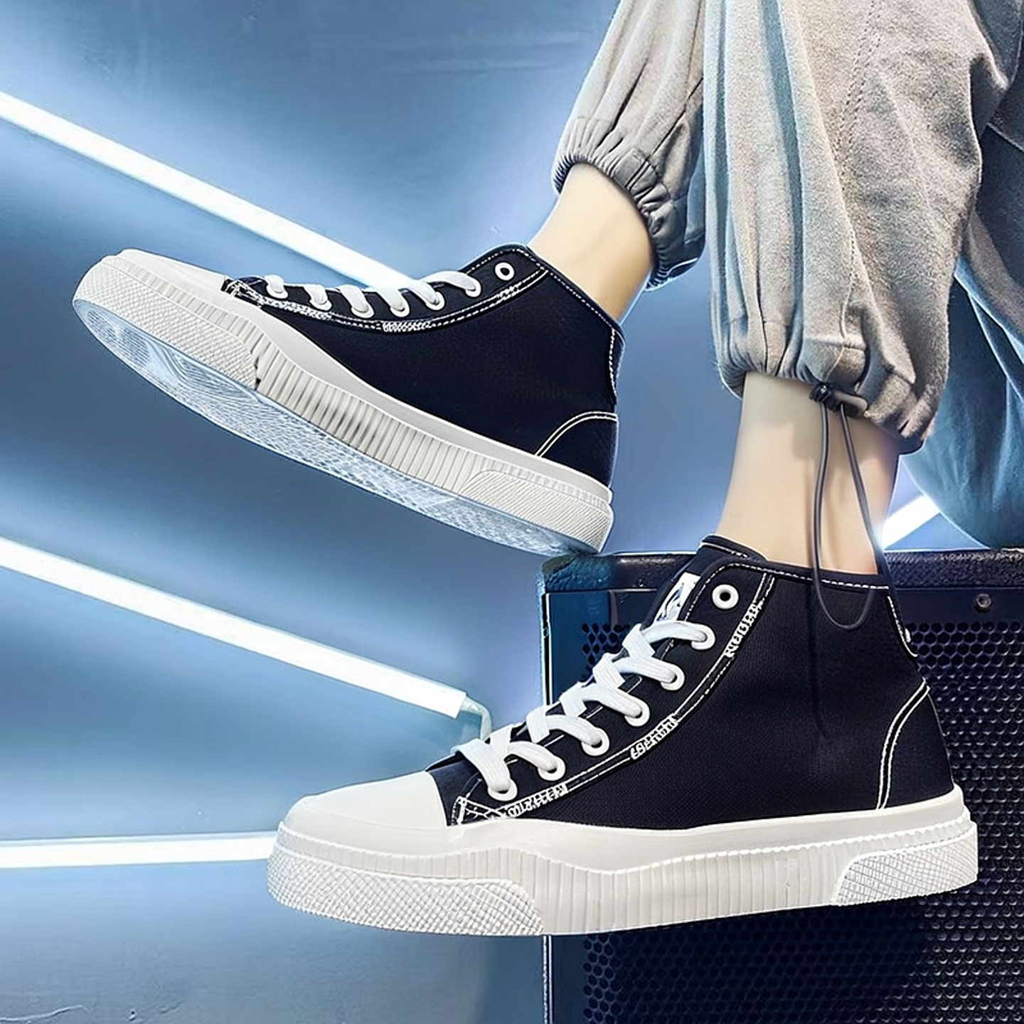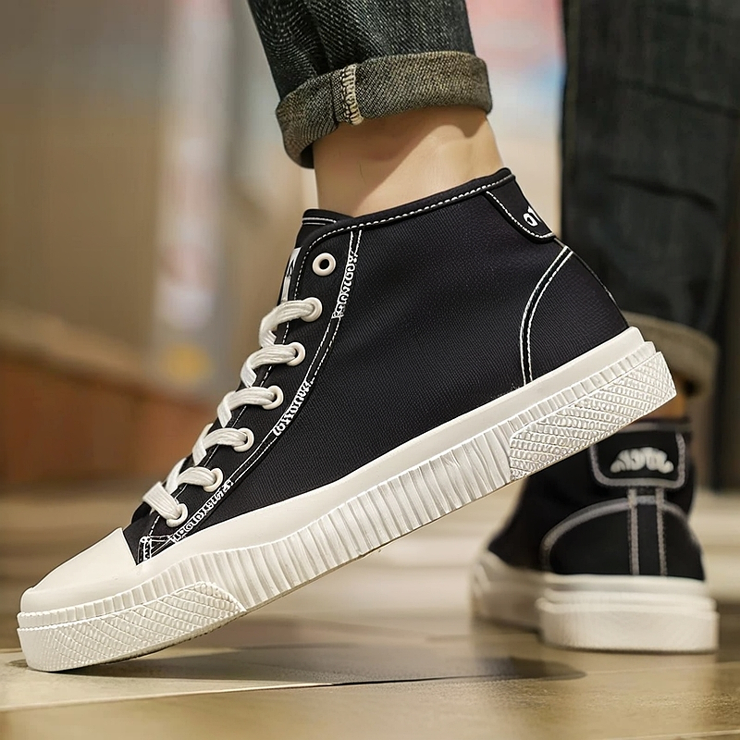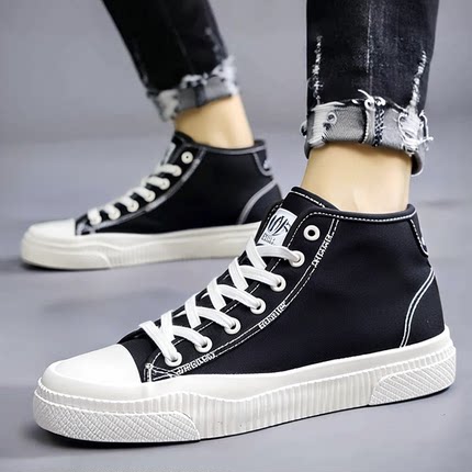 回力透气黑色高帮帆布鞋男