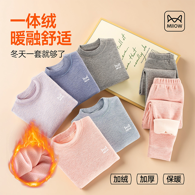 猫人儿童保暖内衣女孩男大童秋衣秋裤套装加绒加厚青少年睡衣学生