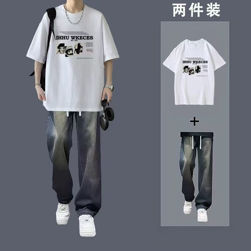 夏季男生穿搭套装搭配裤子T恤女短袖衬衫时尚穿搭套装两件套三件
