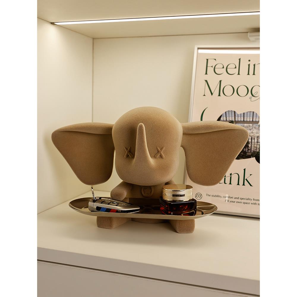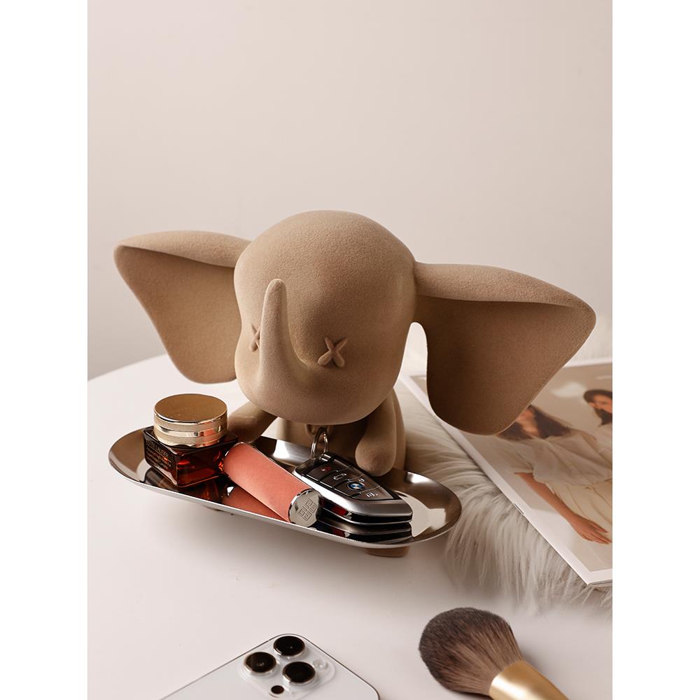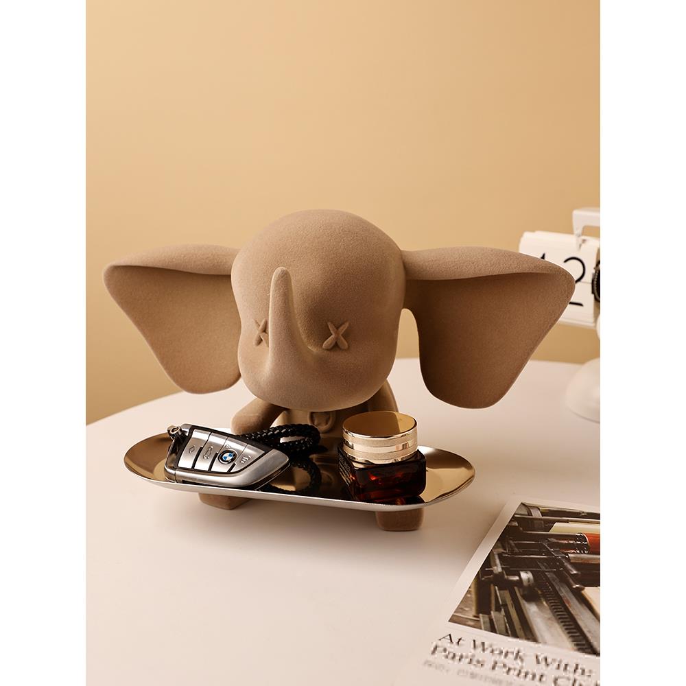 轻奢小飞象玄关钥匙收纳结婚礼物托盘高挡摆件入户装饰品客厅布置