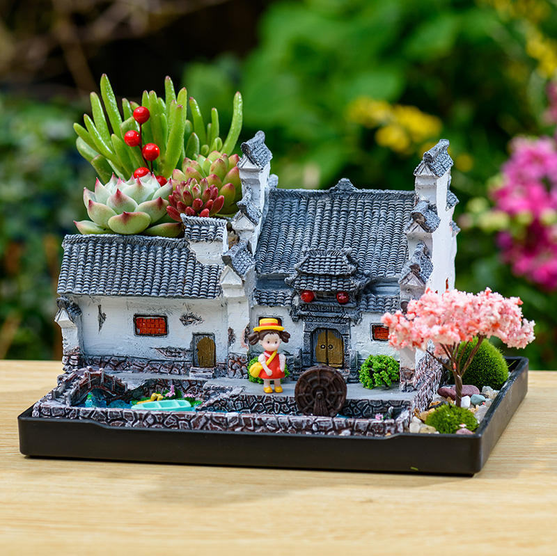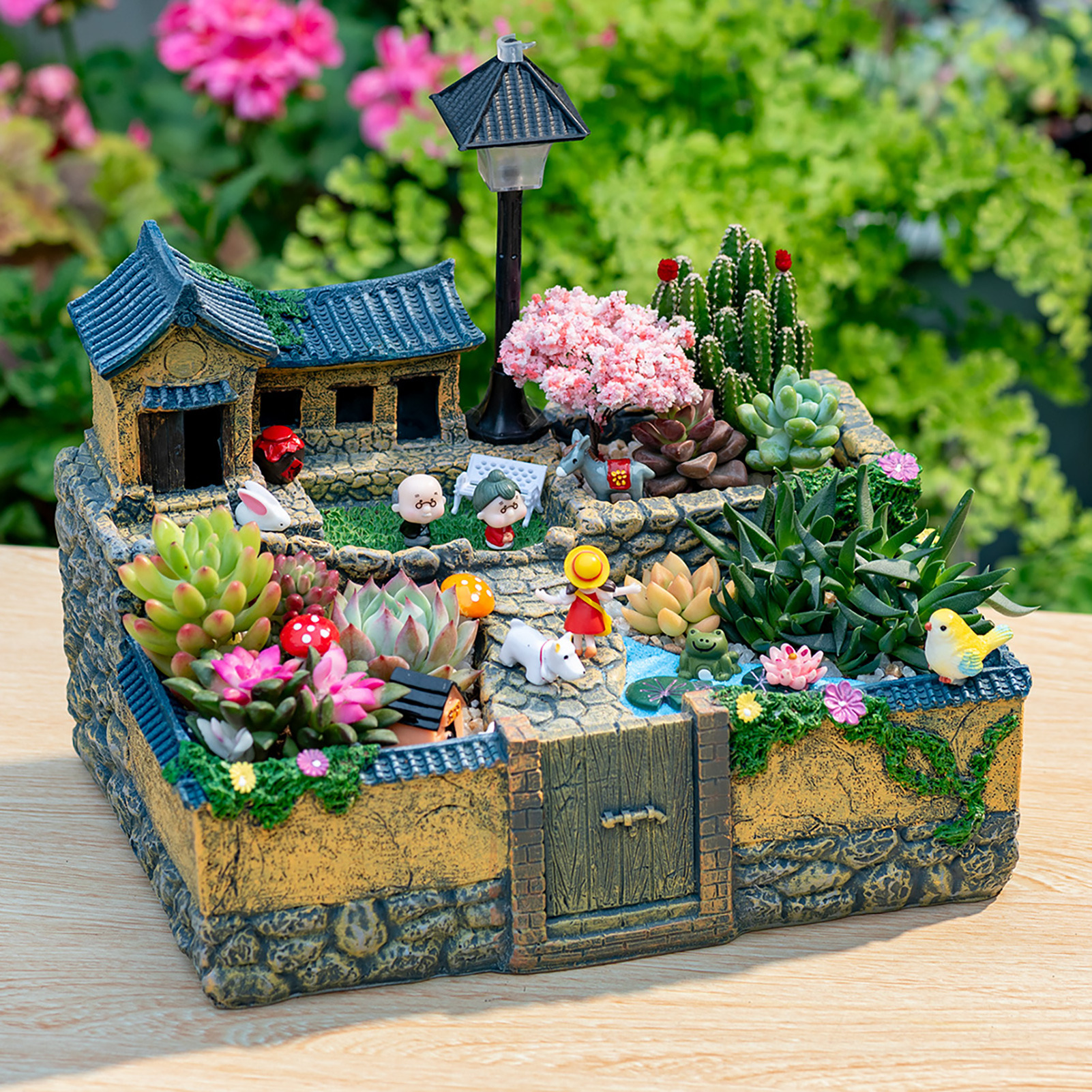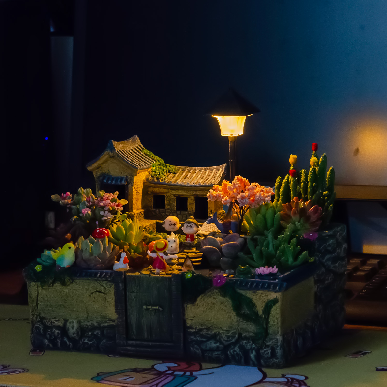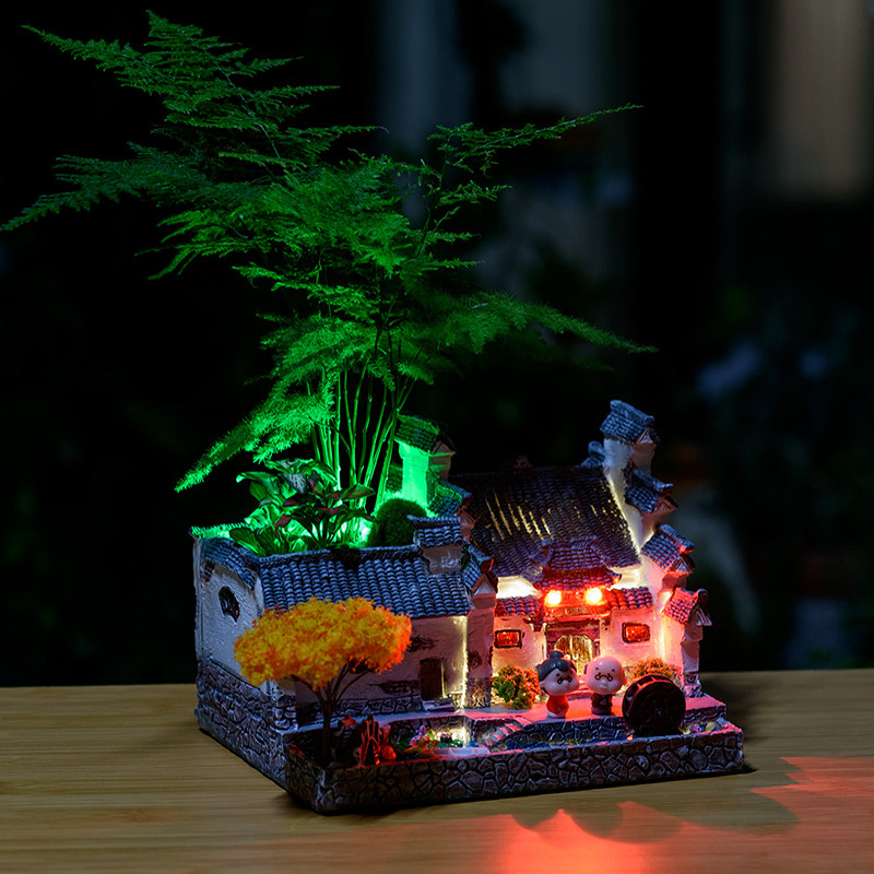 灯火农家小院亮灯庭院房子多肉组合盆栽大号植物拼盘送朋友礼物
