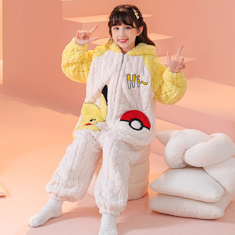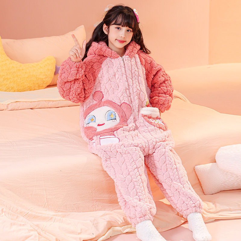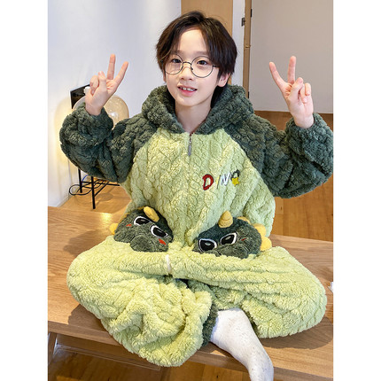 恐龙宝宝儿童连体睡衣中大男女童卡通法兰珊瑚绒拉链家居服亲子装