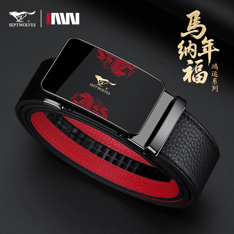 七匹狼本命年红腰带男士真皮2026年马年属马红色皮带新年礼物裤带