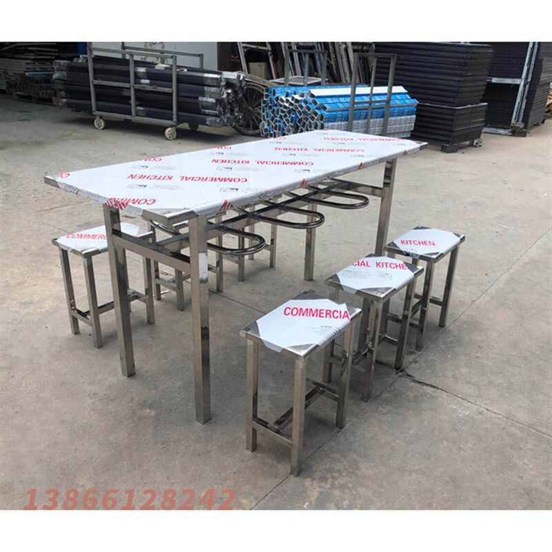 学校学生公司员工快餐店食堂餐桌4人 6人8人不锈钢餐桌椅挂凳子款