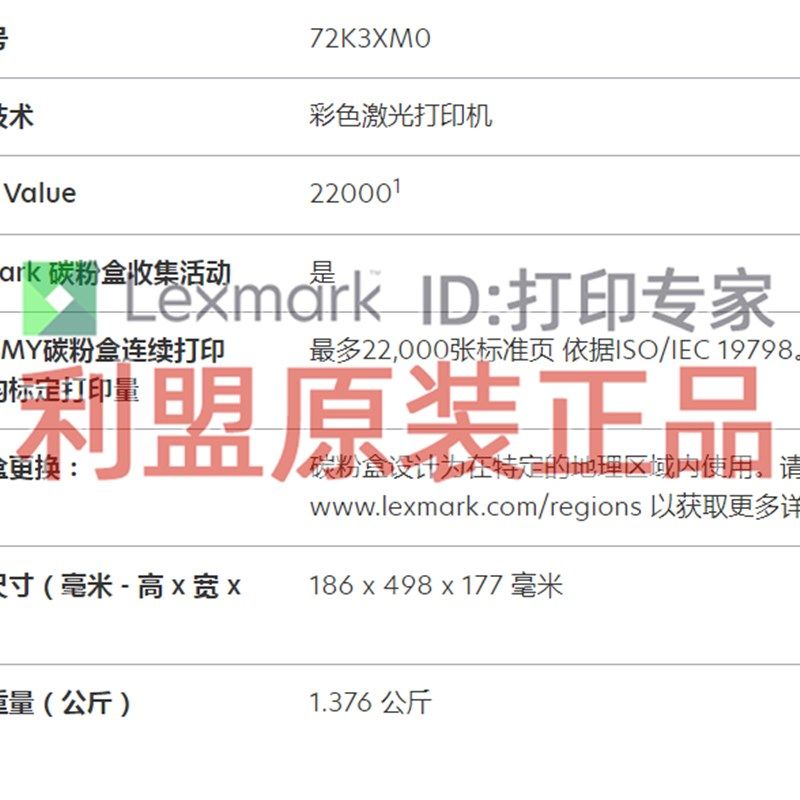 利盟 CS820 de 粉盒 72K3XK0/72K3XC0/72K3XY0/72K3XM0 原装正品