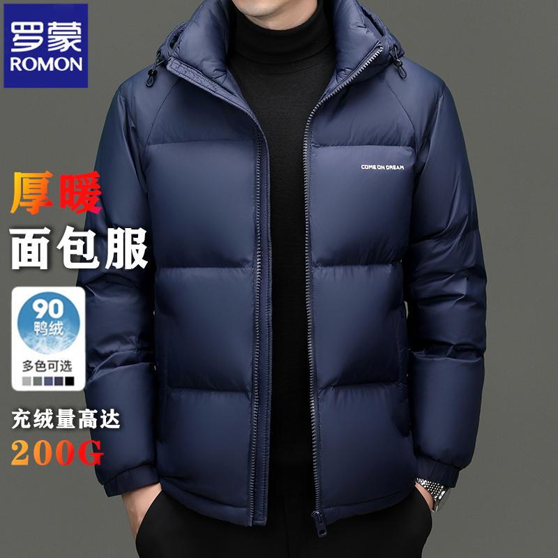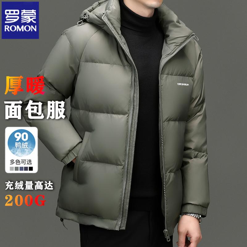 Romon/罗蒙2024冬季新款面包服外套连帽加厚白鸭绒男士防寒保暖