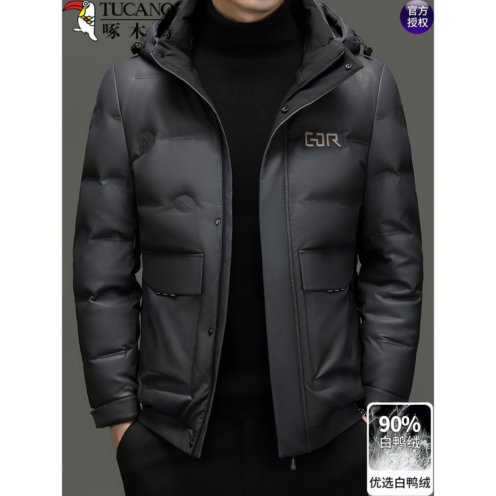 啄木鸟真皮羽绒服男秋冬新款海宁皮夹克加厚保暖宽松大码夹克