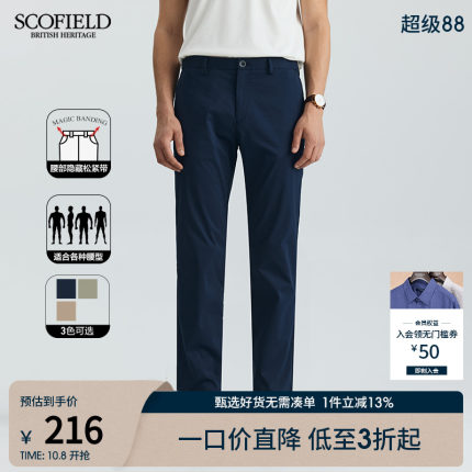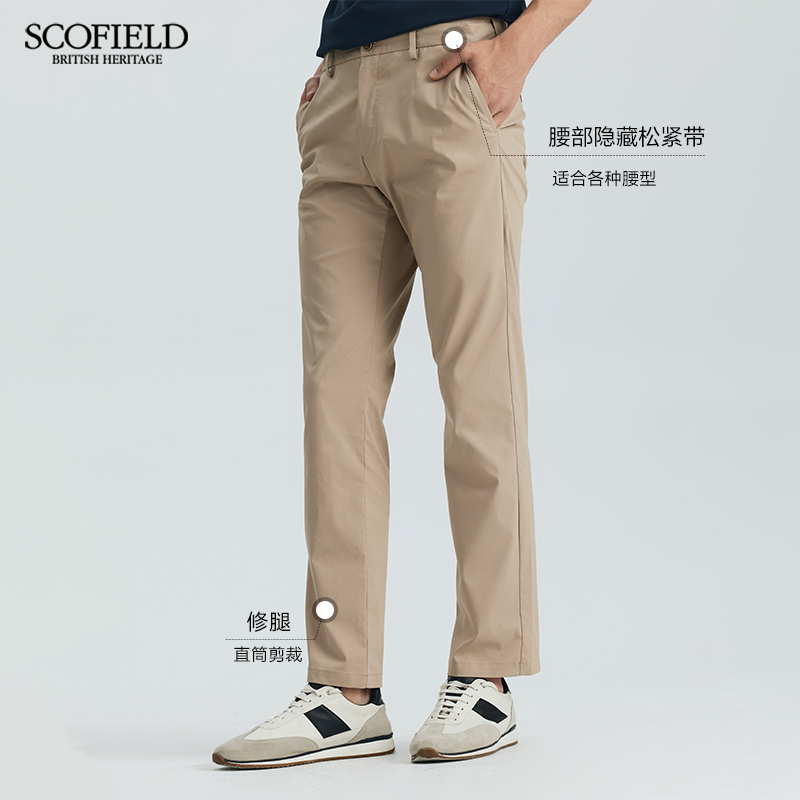 SCOFIELD隐藏松紧腰夏季时尚潮流百搭舒适修身直筒长裤休闲裤