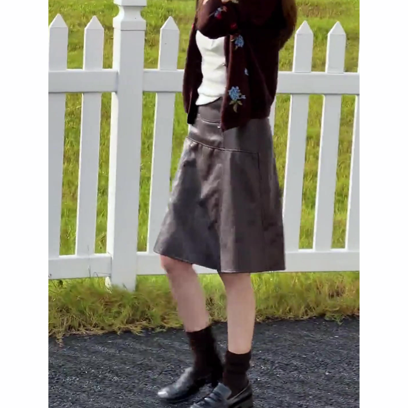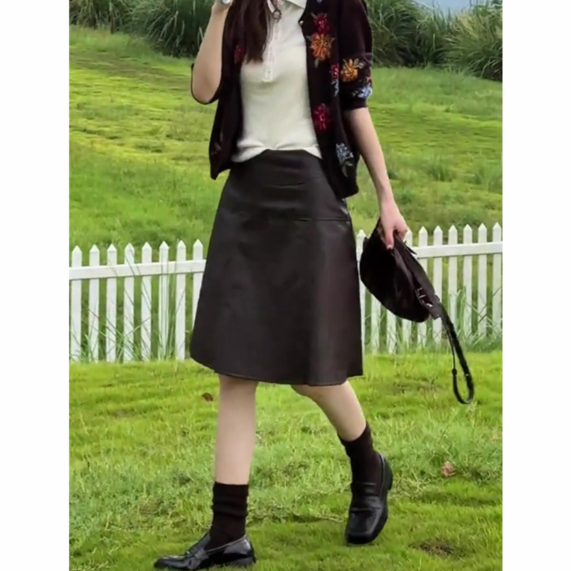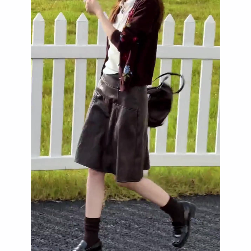 美拉德咖色皮裙女2025秋季流行新款高腰显瘦简约宽松百搭半身裙子