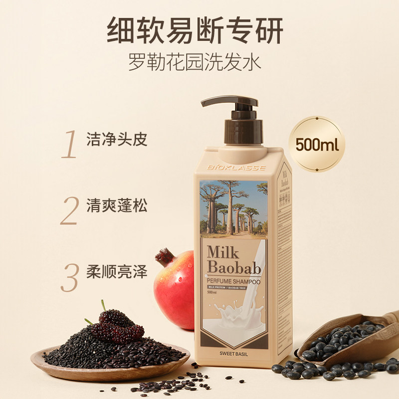 迷珂宝罗勒花园洗发水护发素套装1000ml蓬松留香柔顺