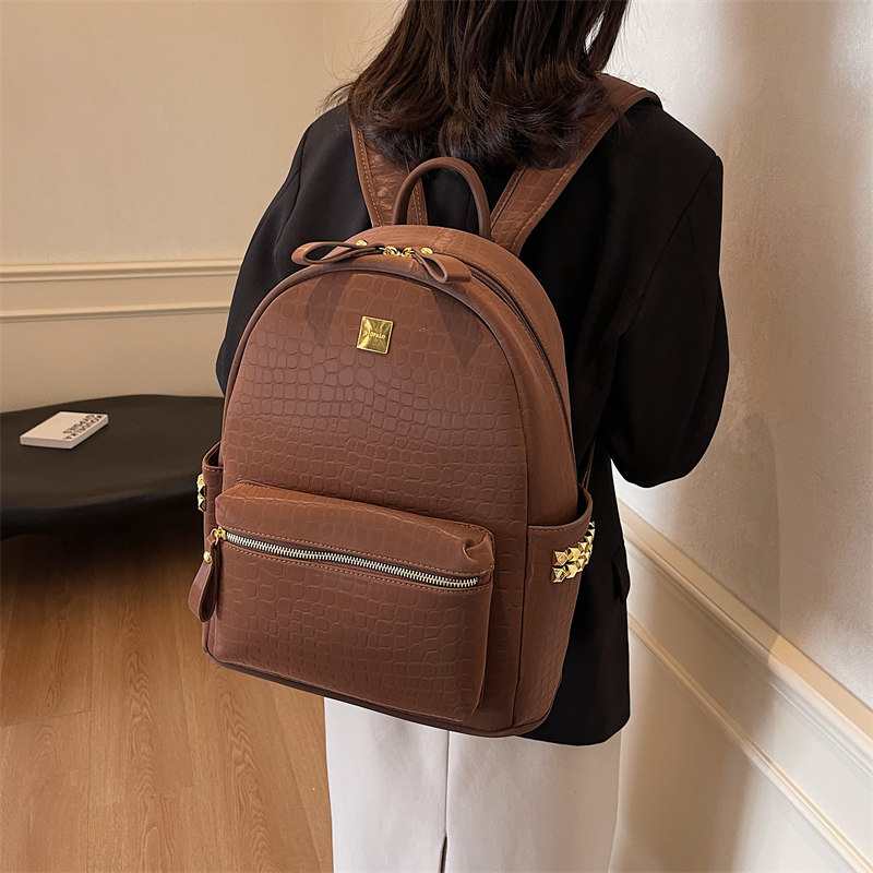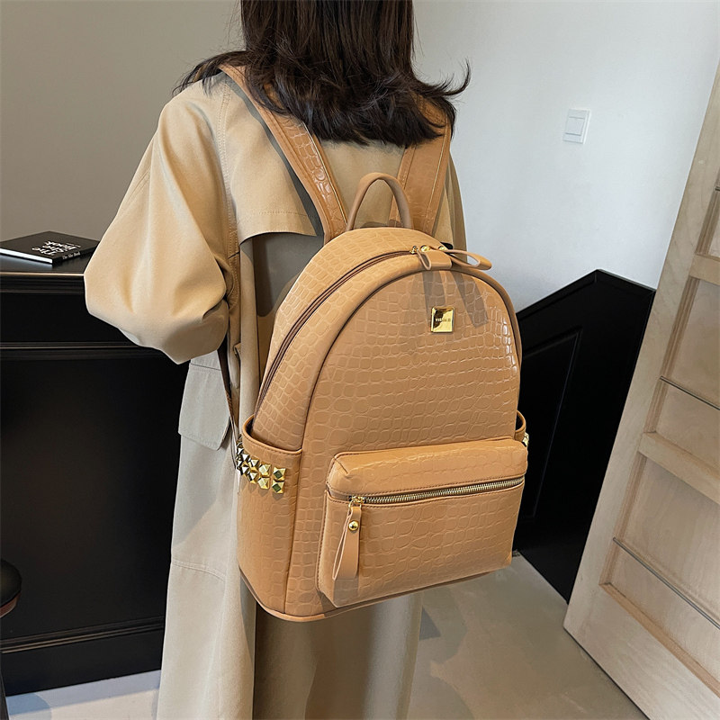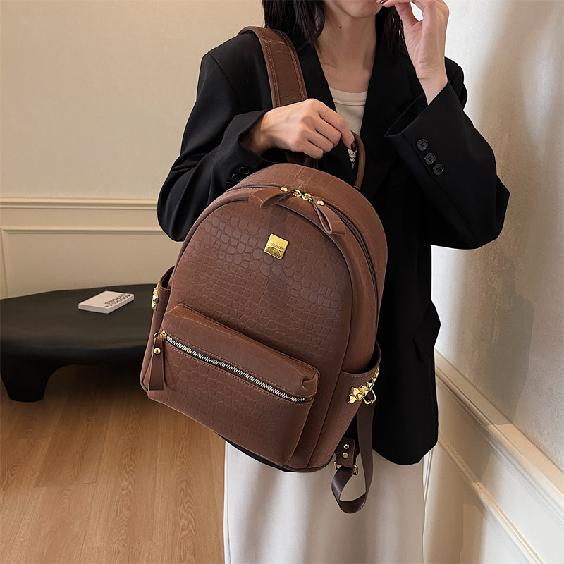 超火的石头纹书包女双肩包可放电脑压花大容量上课书包商务用背包