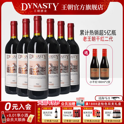 口粮爆款!王朝干红葡萄酒官方旗舰店Dynasty老皇二代6瓶箱装正品