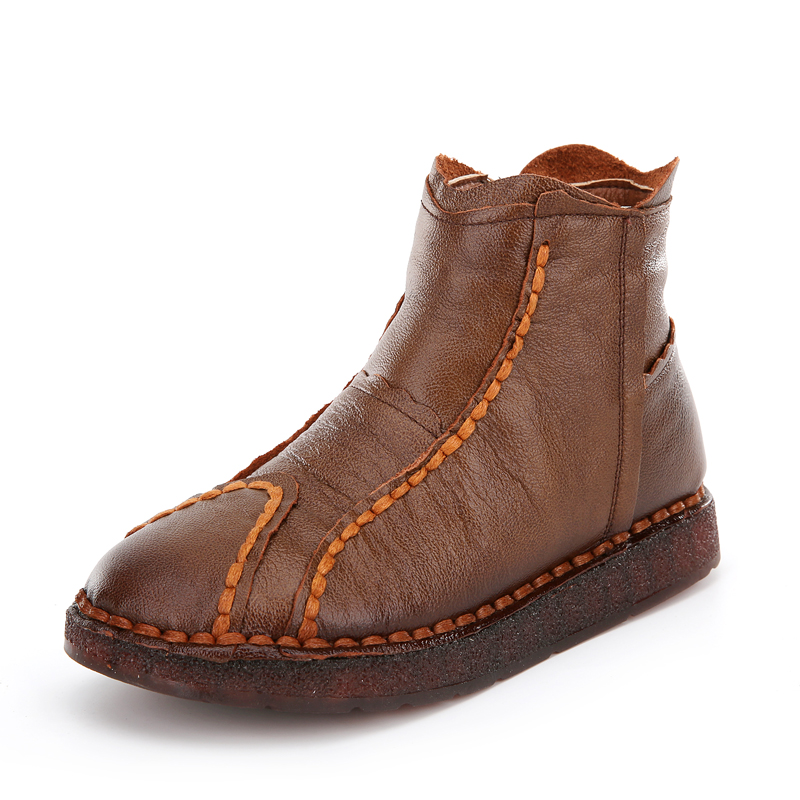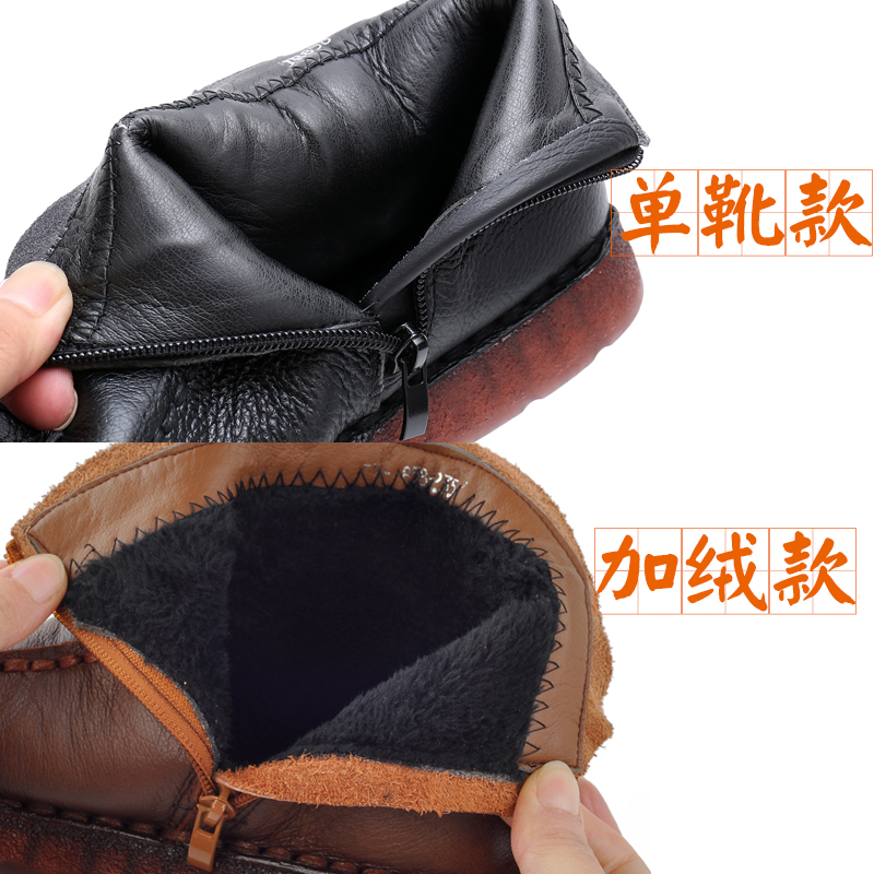 他她女孩冬季加绒妈妈棉鞋女真皮短靴中老年棉靴雪地靴软底皮平底