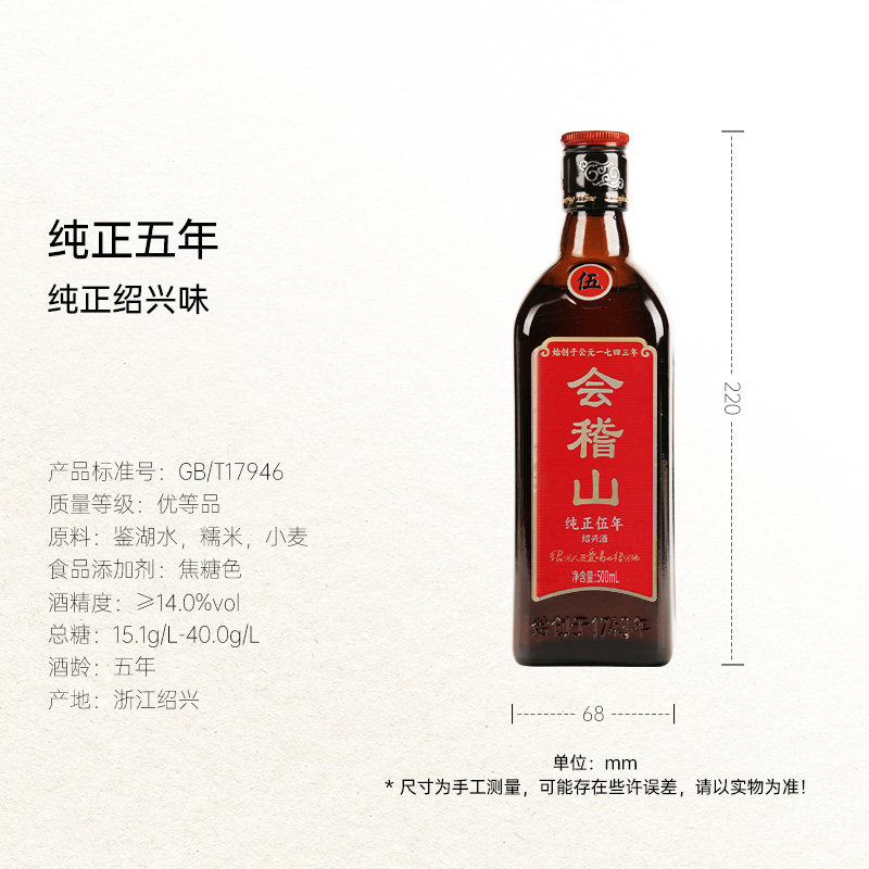 会稽山五年陈绍兴黄酒500ml×6瓶