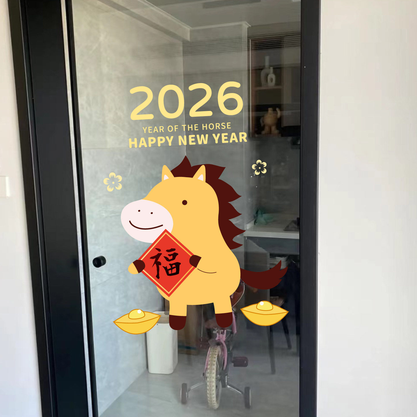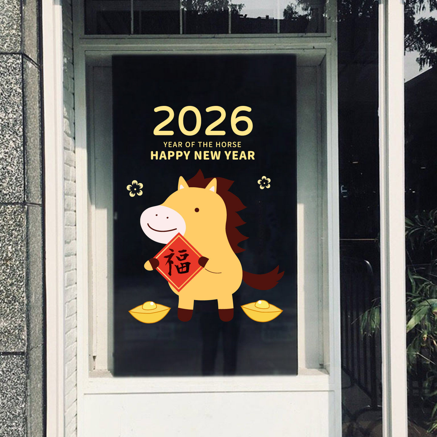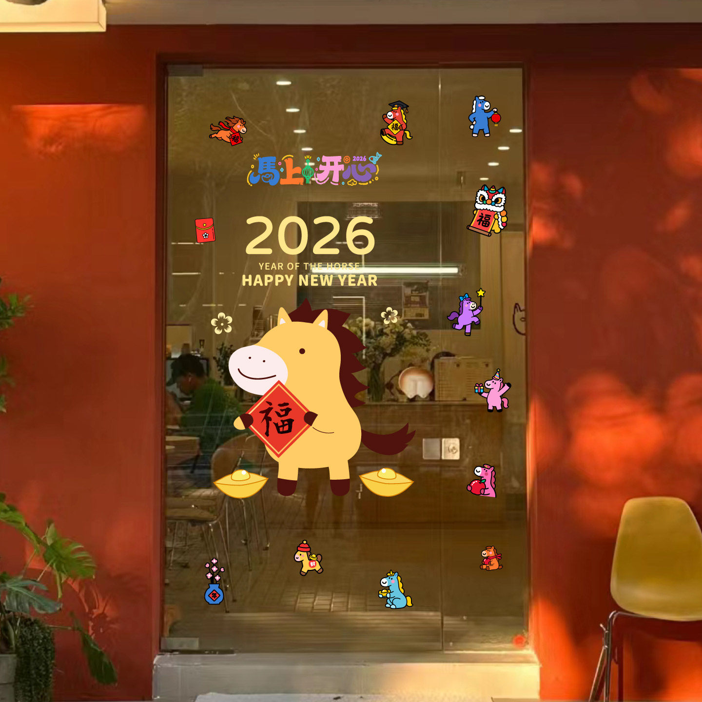新年装饰窗花贴马年春节小马送福氛围布置窗贴2026玻璃门贴纸