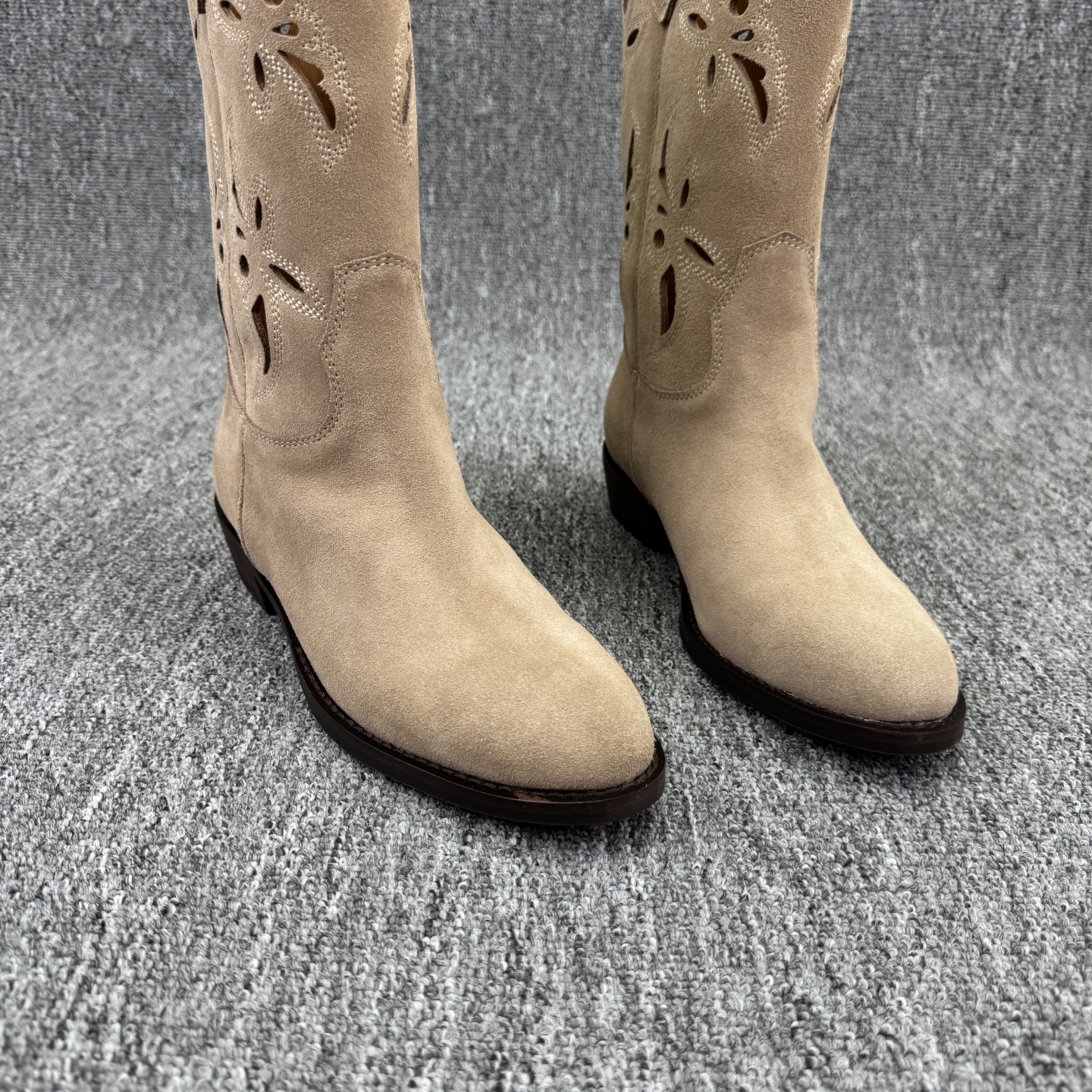 乐魔欧洲站欧货真皮女靴2025秋季新款粗跟高跟马丁靴镂空中筒短靴