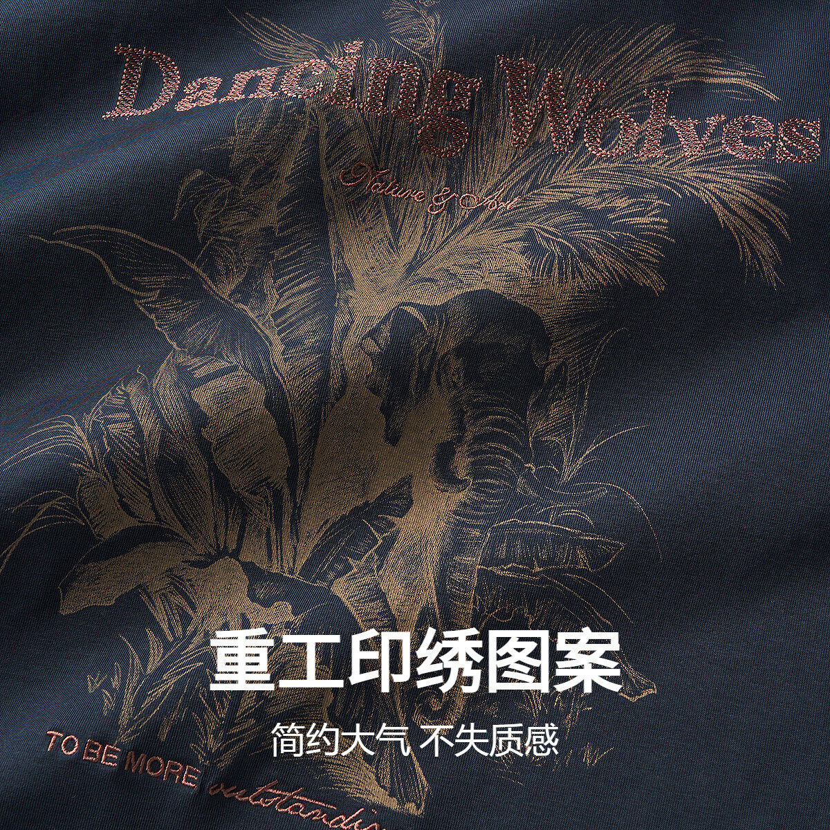 【重工印绣】与狼共舞圆领短袖T恤男士2025夏季新款凉感透气上衣