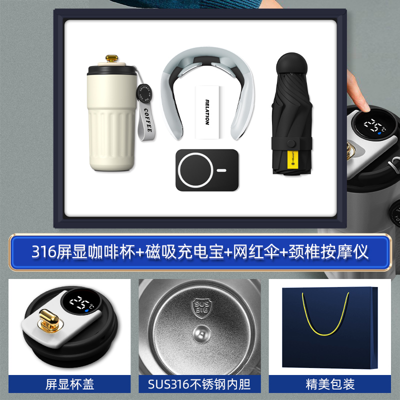 年会商务礼品套装咖啡杯雨伞实用礼盒定制logo圣诞元旦春节伴手礼