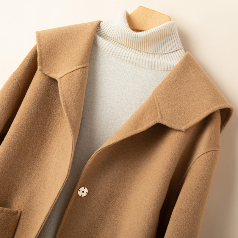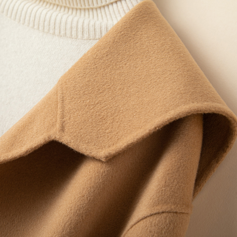 秋冬赫本风双面羊绒大衣女斗篷中长款海军领宽松小个子羊毛呢外套