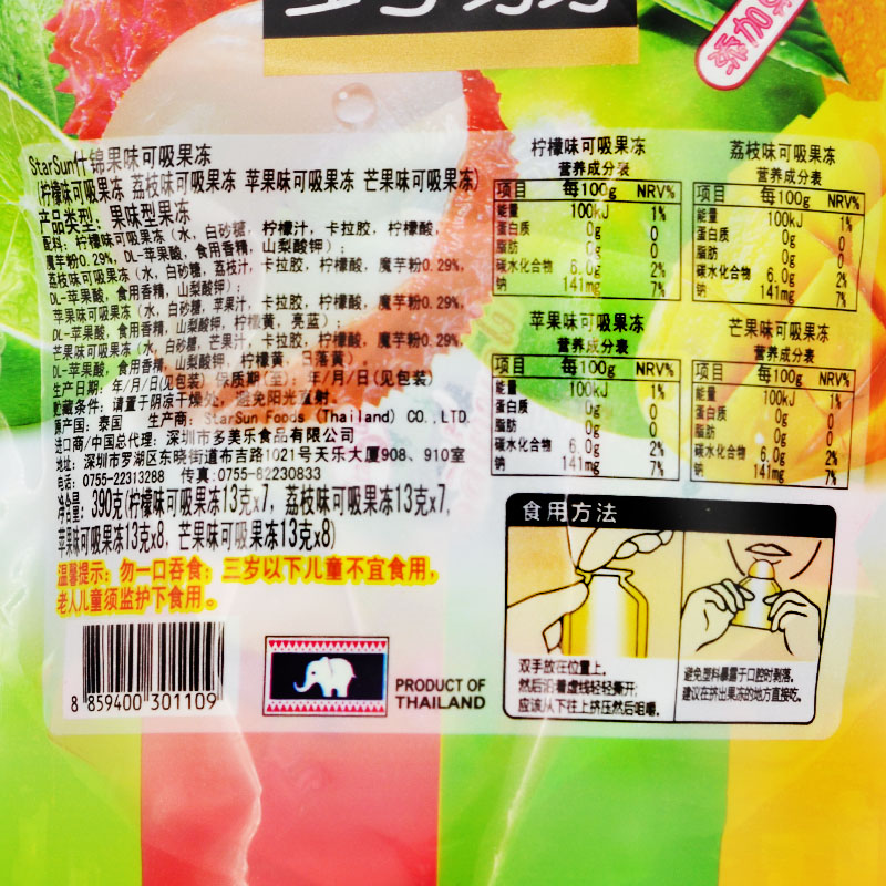 泰国StarSun蒟蒻果冻综合什锦水果汁可吸葡萄草莓儿童进口小零食