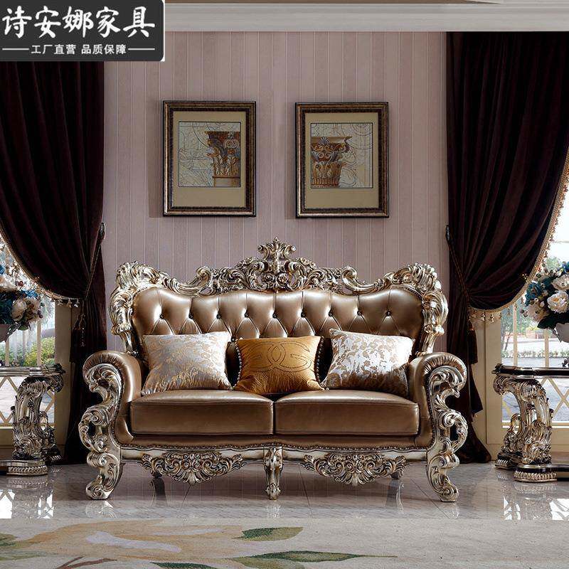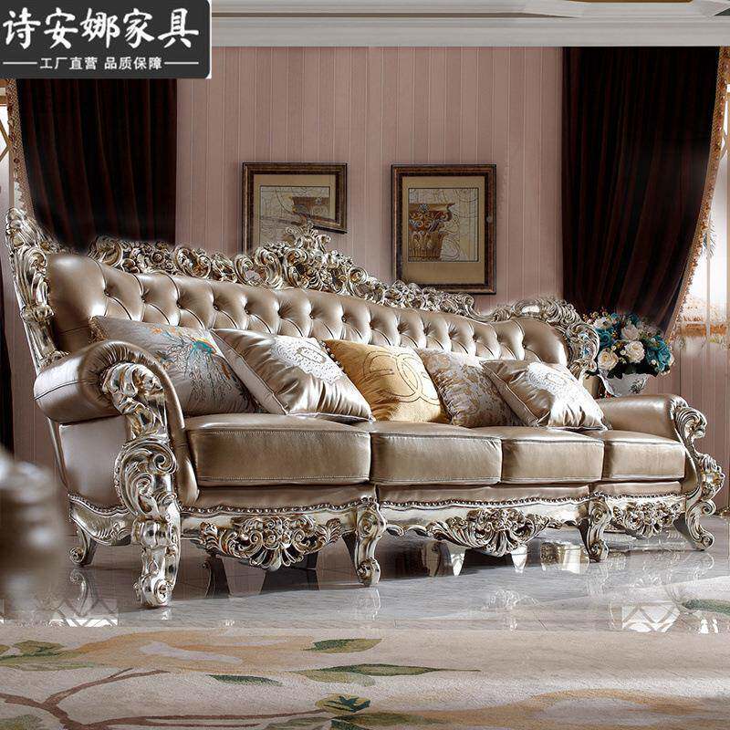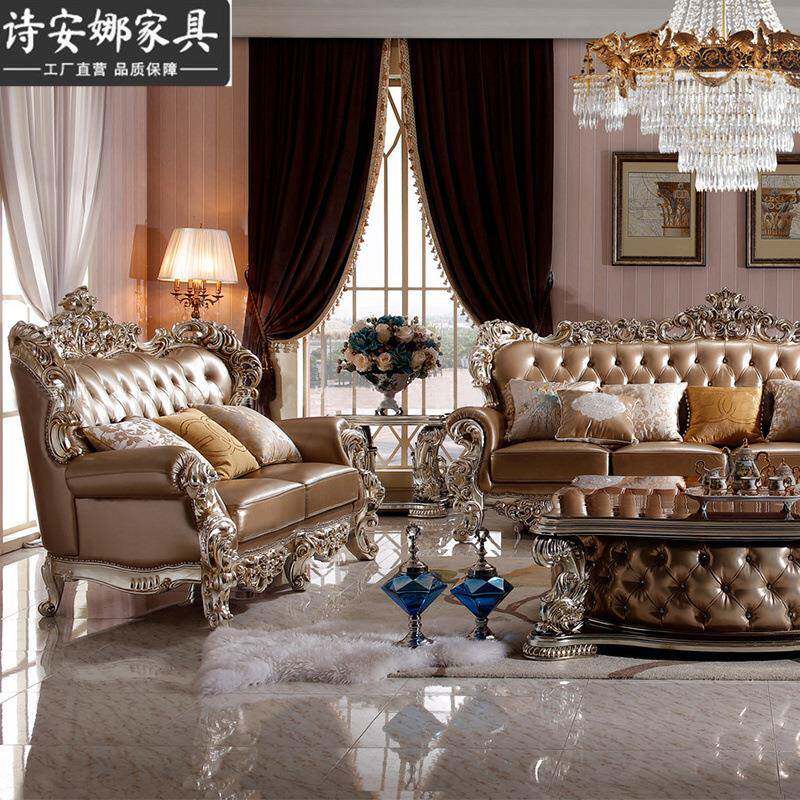 奢华欧式别墅客大厅家42293具户型四位组沙发典新古皮艺沙发合