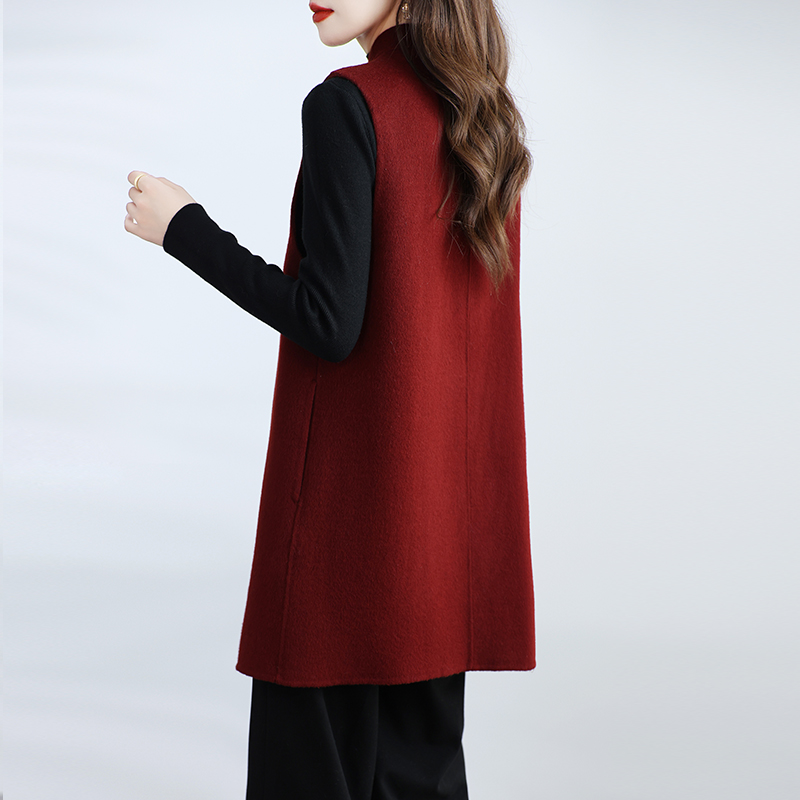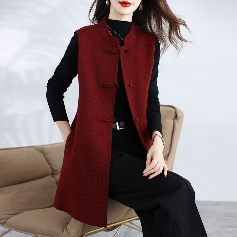 双面绒大衣女装中长款马甲羊毛呢休闲百搭妈妈中国风背心外套春秋