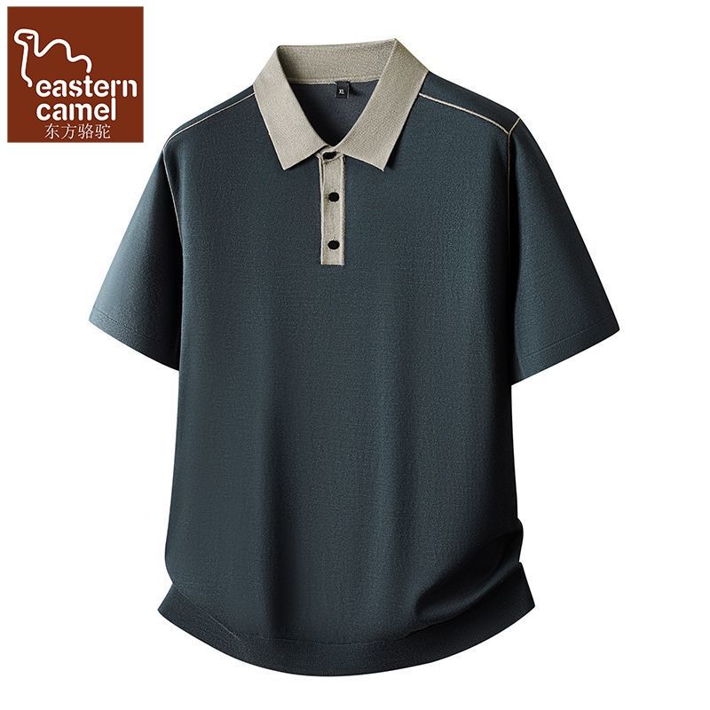 胖子大码男装短袖针织衫春秋款男式宽松休闲翻领毛衣加肥加大线衫
