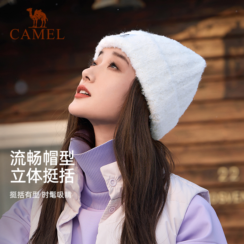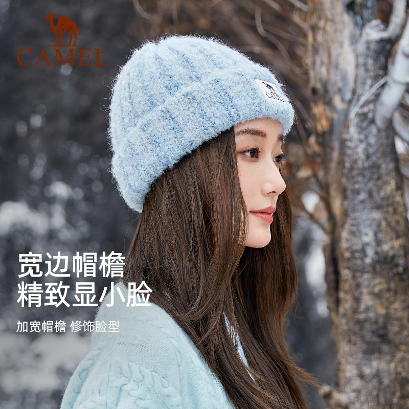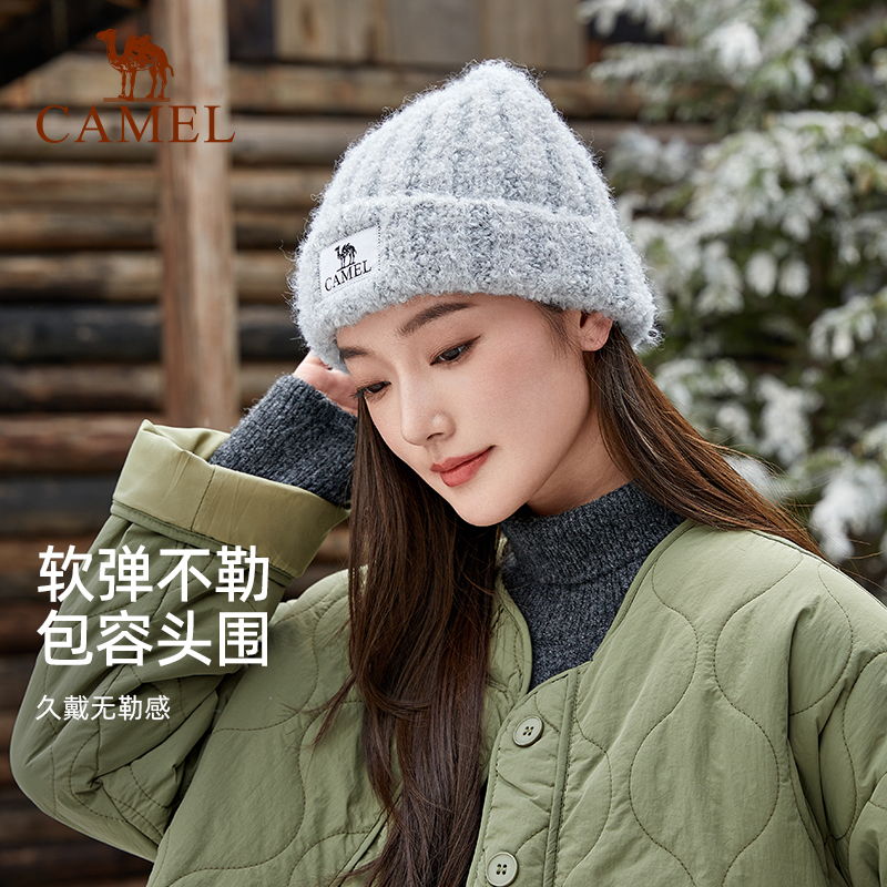 骆驼户外羊毛纱针织帽女大头围显脸小帽子防风护耳包头毛线帽男
