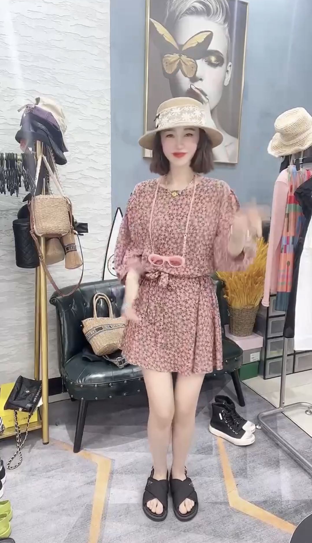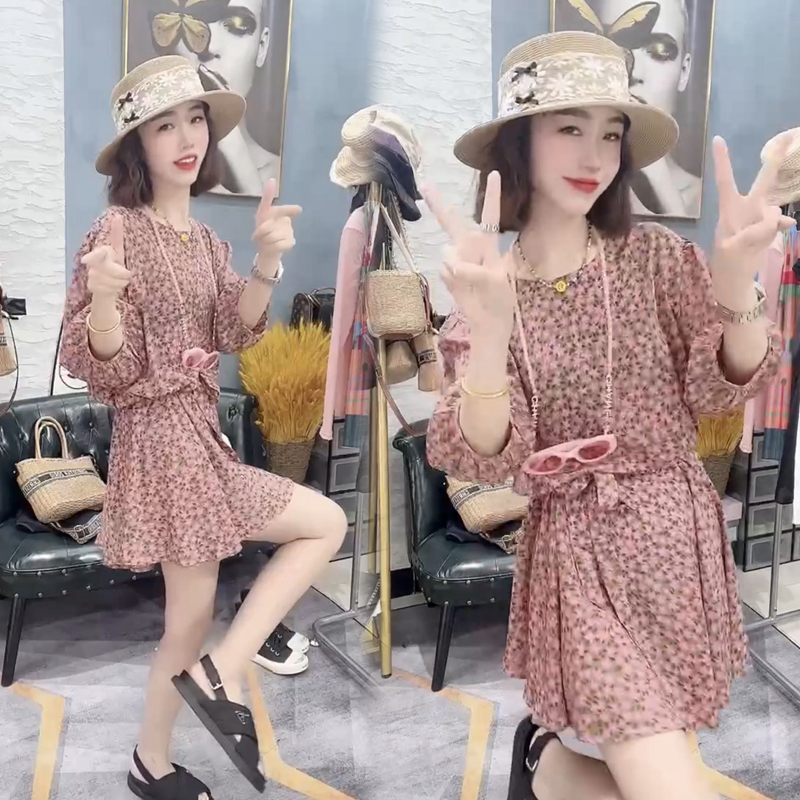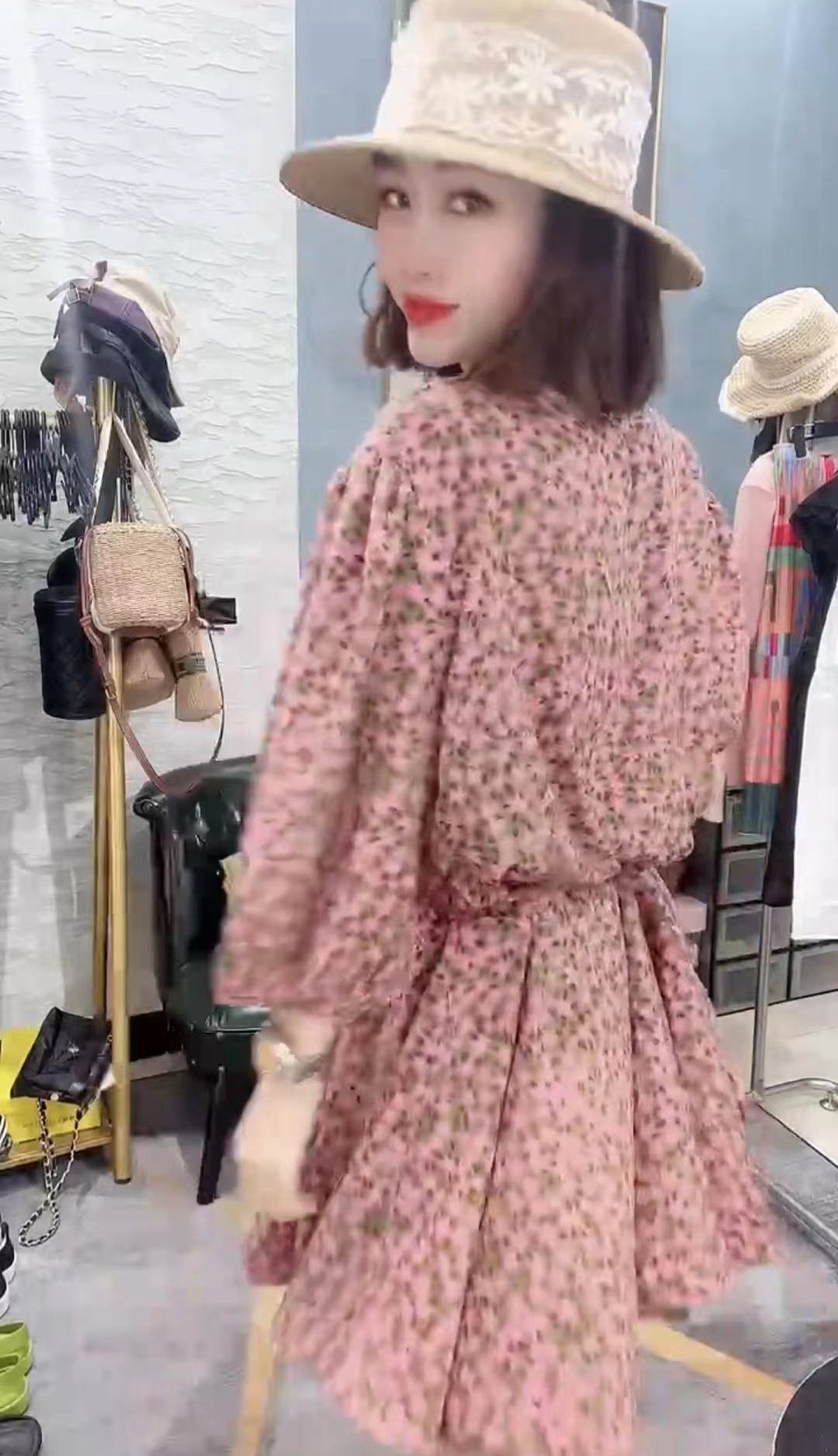 欧货碎花收腰显瘦连衣裙女2025夏季新款百搭a字裙粉色小清新ins风
