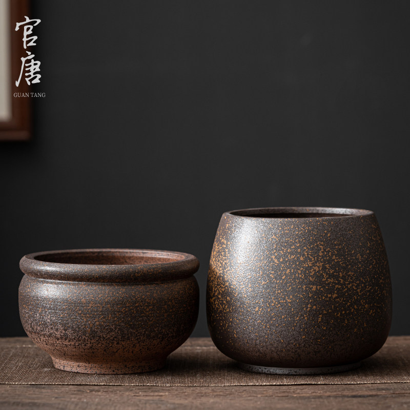 复古茶洗粗陶窑变建水茶渣缸日式干泡水洗茶渣桶水盂功夫茶道配件