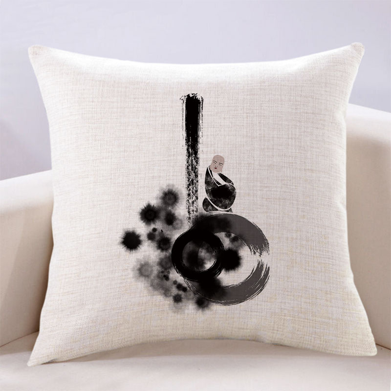 新中式抱枕靠垫中国风水墨禅意亚麻靠垫沙发客厅创意高档大靠背枕
